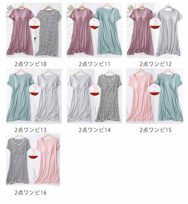 お得な2点セット!カップ付き ルームウェア ワンピース 半袖 パジャマ ネグリジェ Vネック 部屋着 寝間着 寝巻 かわいい 大人 可愛い ナイトウェア 春 夏 大きいサイズ M L XL 2XL 3XL 4XL 5XL 6XL