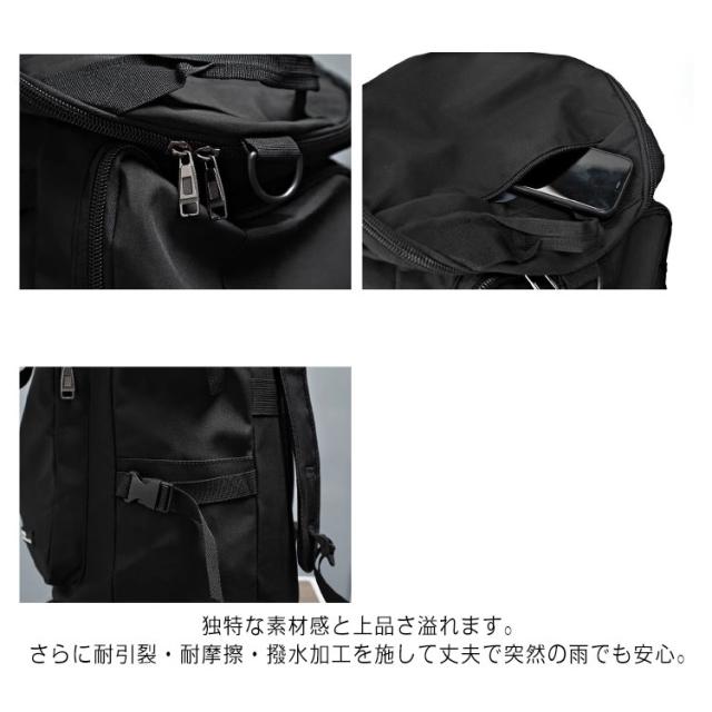 | 最大の特徴は、手提げ、ショルダー、リュックの3WAY機能! A4書類収納可能。15.6型ワイドまでのノートパソコン対応。 取り外し可能なベルト付きで、長さを調節する事でリュックとしてもショルダーバッグとしてもお使い頂けます! 開口部はU字に開くので視認性も高く、衣類などの大きなアイテムも出し入れスムーズ! また、埋もれがちな小物の収納に丁度良いポケットを複数設ける事でよりアイテム管理がしやすくなりました! 独特な素材感と上品さ溢れます。さらに耐引裂・耐摩擦・撥水加工を施して丈夫で突然の雨でも安心。 旅行・アウトドア・ビジネス・修学旅行・自然学校、また、防災用など、様々な用途でご利用いただけます。 | |