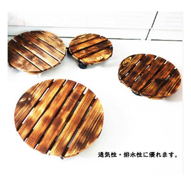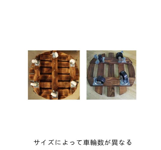 | キャスター付きで移動が楽な木製鉢置き。 通気性・排水性に優れます。 重い花鉢や陶器の花瓶、鉢植えの木なども乗せることができます。 炭化処理済みの木材・屋外用にもOK。 素材のシンプルな美しさがあり、和室から洋室まで自然に溶け込みます。 | |