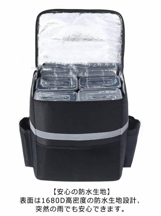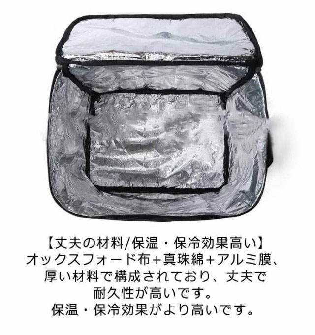 | 【防水】【50L】【保温保冷】【拡張可】 用途:保温・保冷 、配達に最適なデリバリーバッグ 【安心の防水生地】 表面は1680D高密度の防水生地設計、突然の雨でも安心できます。デリバリーバックだけでな普段の買い物からピクニック、釣り、キャンプ等日常の様々なシーンで活躍できます。 【丈夫の材料/保温・保冷効果高い】 オックスフォード布+真珠綿+アルミ膜、厚い材料で構成されており、丈夫で耐久性が高いです。保温・保冷効果がより高いです。 【2枚の仕切り板/ピザも入れる大容量】 2枚の仕切り板付き、冷たい飲み物と温かい食べ物を隔てることができ、合理的に空間を区分できます。 下の方は容量を拡充できる袋を設計して、50Lの大容量に達します。 | |
