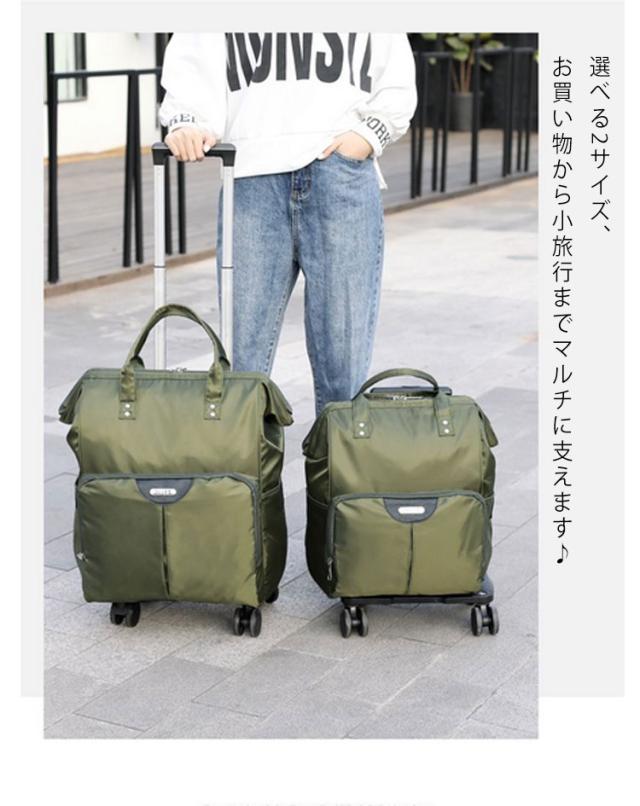 | 高い機能性とデザイン性を兼ね備えたリュック&キャリー キャリーバッグとしてもリュックとしても使える2WAYキャリーバッグが登場! 4輪を装備しているので移動がスムーズ。ハンドルを伸ばせば重たい荷物もラクラク移動。 選べる2サイズ、お買い物から小旅行までマルチに支えます♪ 耐引裂・耐摩擦・撥水加工を施して丈夫で突然の雨でも安心。 キャリー台を外して、リュック単品としてもお使いいただけます。 使わないときはキャリー台に折りたたみ可能。 旅行先、移動中に両手が空くと嬉しいですね。2〜3日の旅行や出張、帰省等にオススメ!! | |