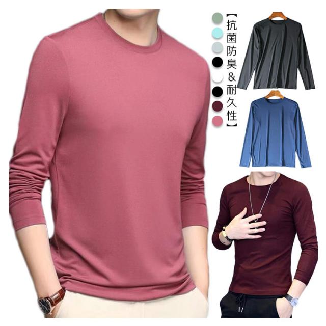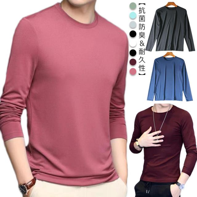 送料無料 インナー 長袖 トップス メンズ 秋服 肌着 Uネック 薄手 ストレッチ 伸縮性 レイヤード カットソー 大きいサイズ 着痩せ おしゃれ ルームウェア 部屋着 メンズTシャツ 春服 柔らかい プレゼント 吸汗 速乾