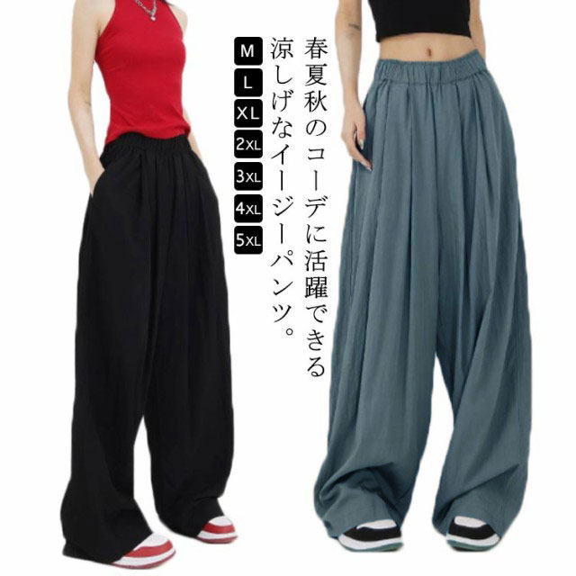 リネンワイドパンツ レディース リネン パンツ ワイドパンツ イージーパンツ リラックスパンツ 無地 ガウチョ ウエストゴム 麻 綿麻 麻混 ゆったり パンツ ボトムス ガウチョ 美脚 ボトム 春 夏 秋 ロングパンツ 体型カバー きれいめ 30代 20代 40代 送料無料