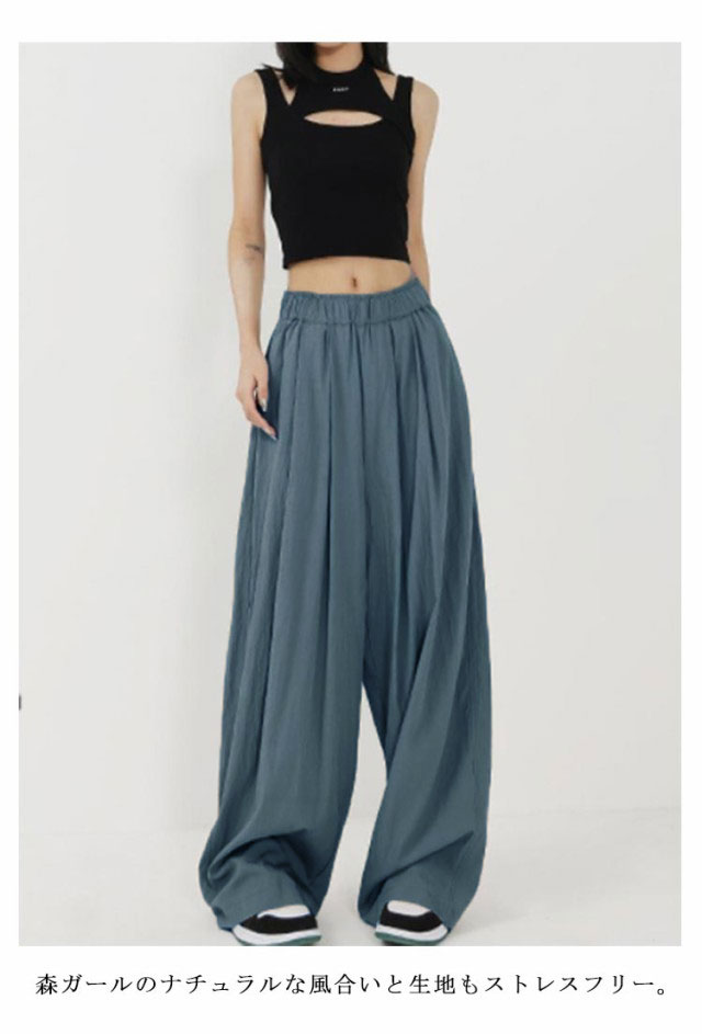 | 春夏秋のコーデに活躍できる涼しげなイージーパンツ。 ボリュームのあるロング丈も、爽やかな生地感で重たくならずにすっきりと着こなせます ウエスト部にゴムが入り、穿き脱ぎしやすいです。 森ガールのナチュラルな風合いと生地もストレスフリー。 シンプル無地デザインだからどんなトップスとも好相性◎ | |