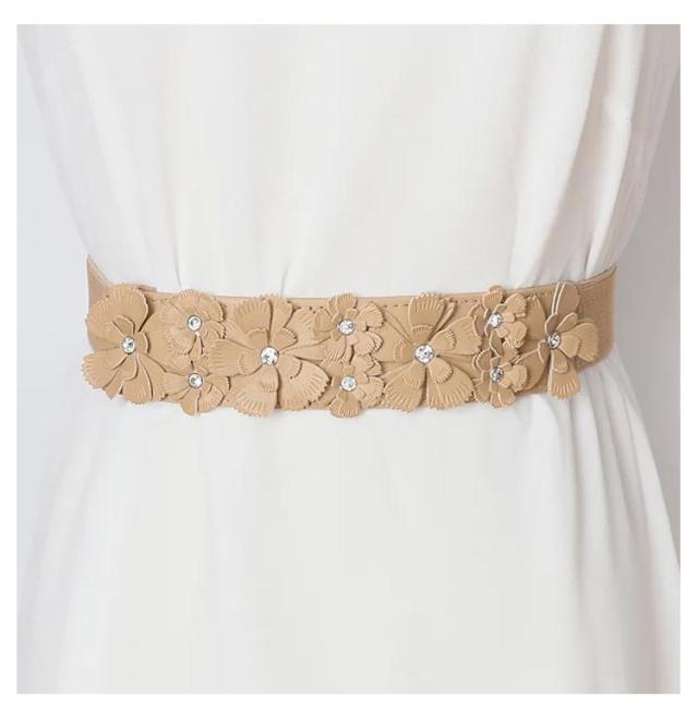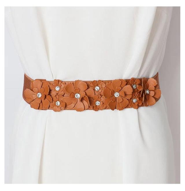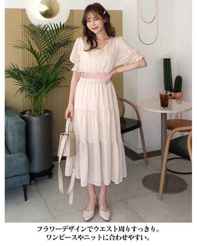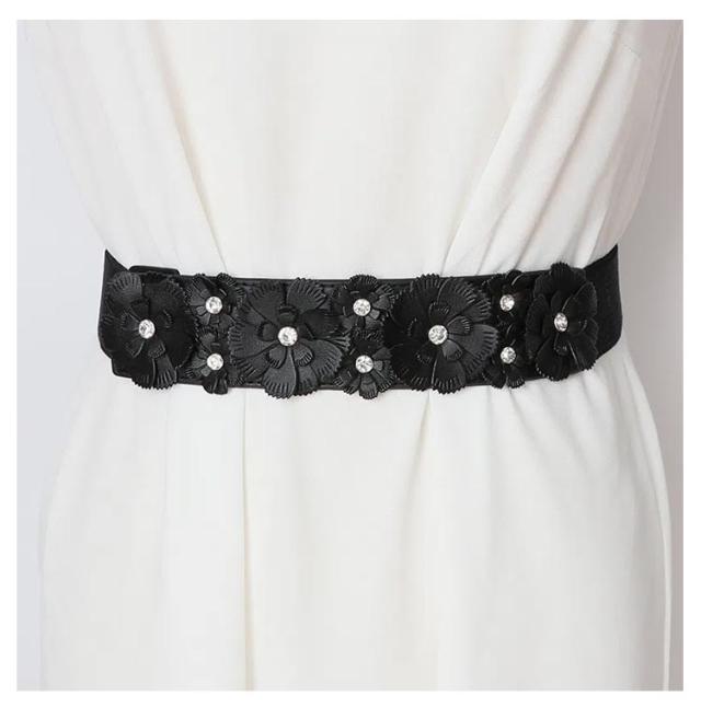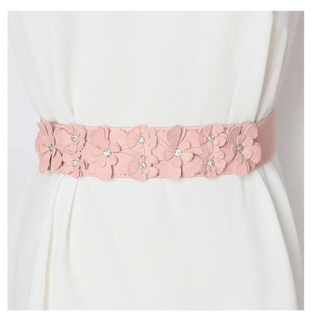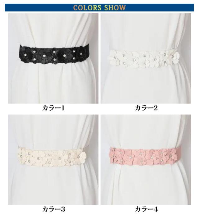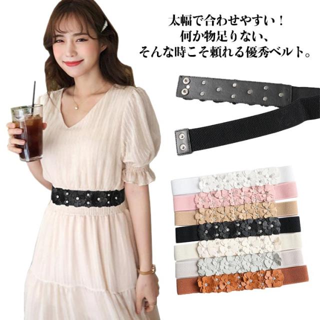 【送料無料】ベルト レディース ゴムベルト 太ベルト 花 フラワー おしゃれ 結婚式 ドレス ベルト ハイウエスト ウエストマーク スカートベルト 伸縮 ストレッチ レザーワイドベルト 合皮 大人 おしゃれ かわいい