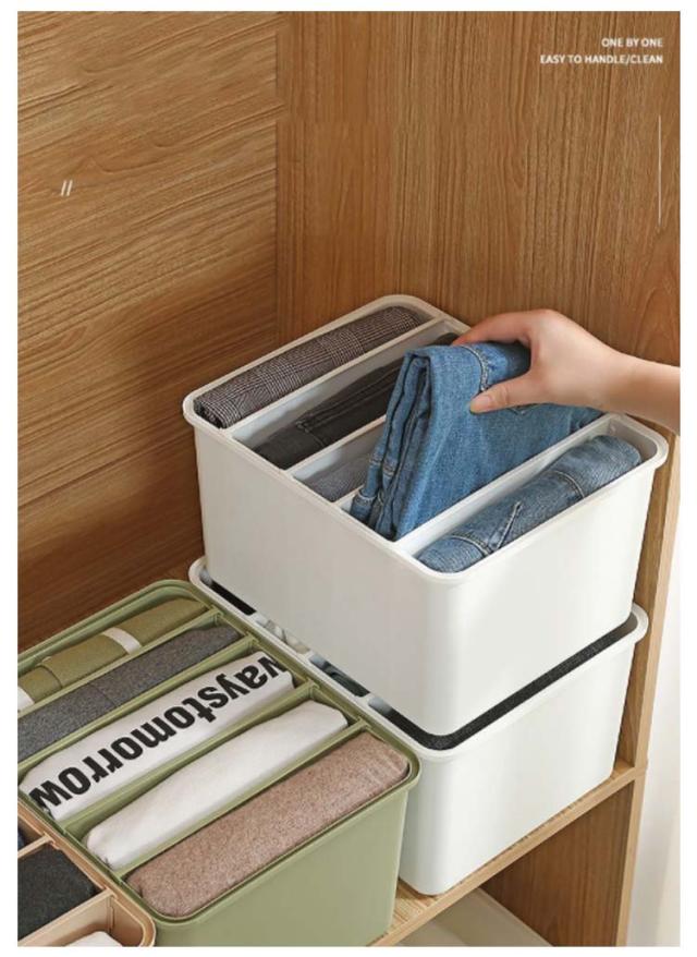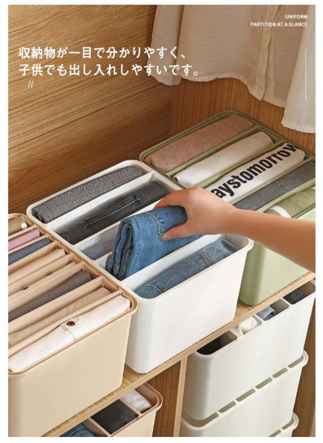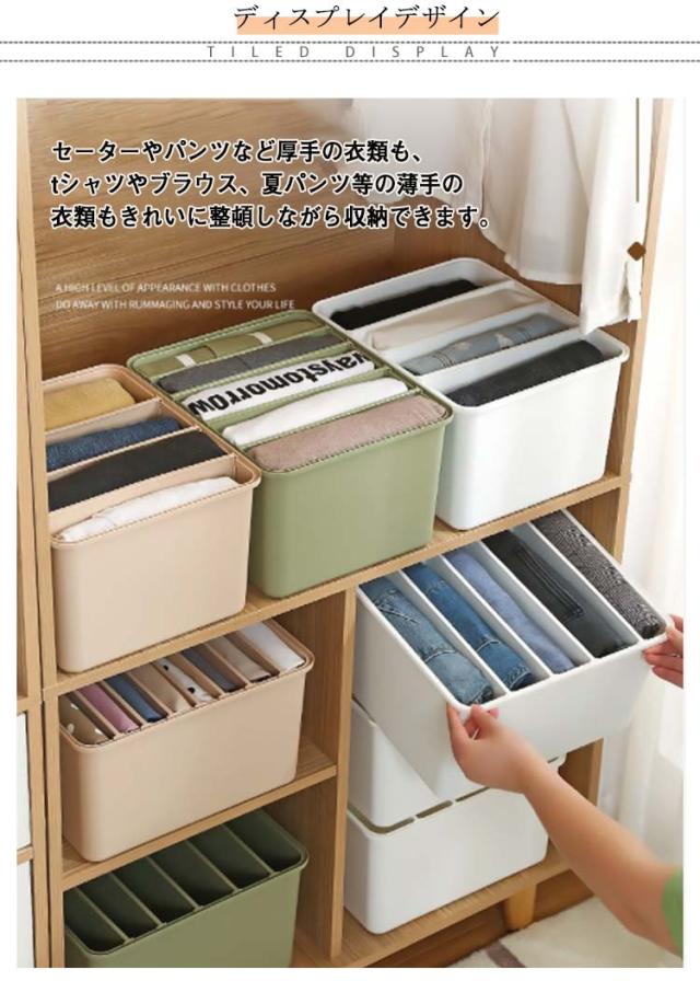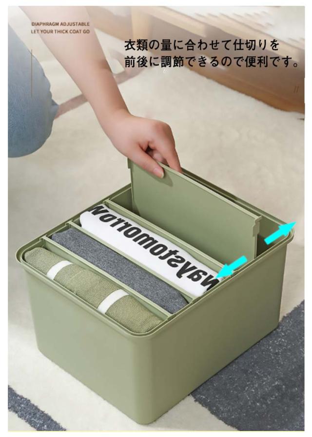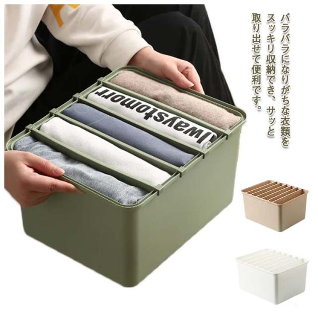 | バラバラになりがちな衣類をスッキリ収納でき、サッと取り出せて便利です。 セーターやパンツなど厚手の衣類も、tシャツやブラウス、夏パンツ等の薄手の衣類もきれいに整頓しながら収納できます。 S(5マス仕切り付)、M(6マス仕切り付)、L(7マス仕切り付)、LL(8マス仕切り付)の4サイズ・3色展開です。 丈夫で厚みがありプラスチックを使用し、耐久性が抜群です。 衣類の量に合わせて仕切りを前後に調節できるので便利です。 収納物が一目で分かりやすく、子供でも出し入れしやすいです。 | |