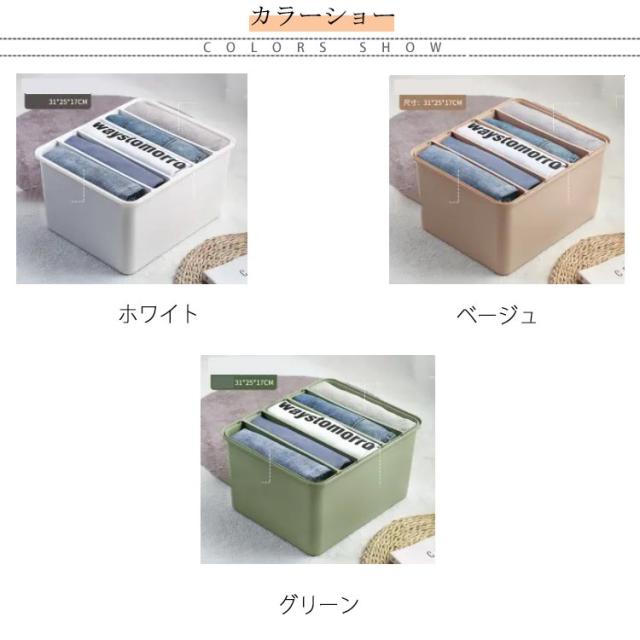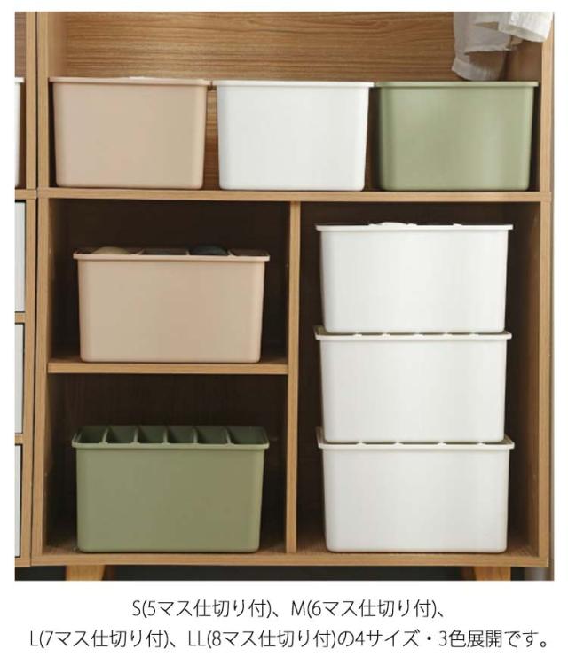 | サイズについての説明 | S(4マス仕切り付・セーターやパンツなど厚手の衣類用) M(5マス仕切り付・tシャツやブラウス、スカートなど薄手の衣類用) L(6マス仕切り付・tシャツやブラウス、スカートなど薄手の衣類用) LL(7マス仕切り付・tシャツやブラウス、スカートなど薄手の衣類用) S/M/L/LLケースサイズ:横幅31cm 奥行26cm 高さ17cm |