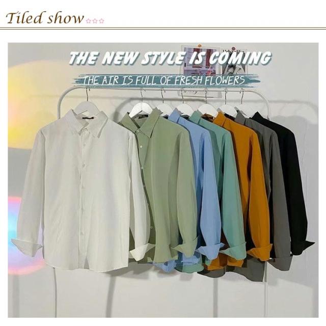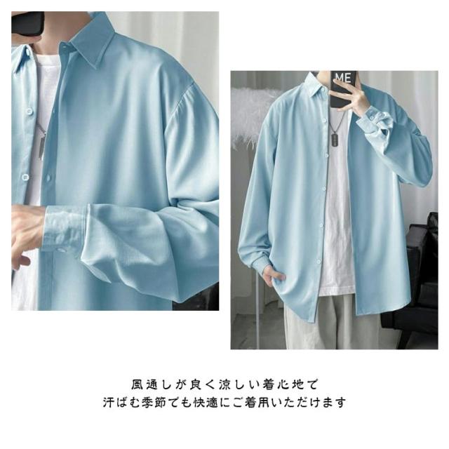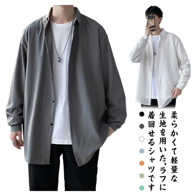 送料無料 シャツ メンズ ストレッチ カジュアルシャツ 大人 長袖 春 夏 春服 夏服 スリム ダウンシャツ 韓国 ファッション 爽やか カジュアル オールシーズン トップス 薄手 無地 きれいめ 父の日 プレゼント 20代 30代 軽い 柔らかい ゆったり