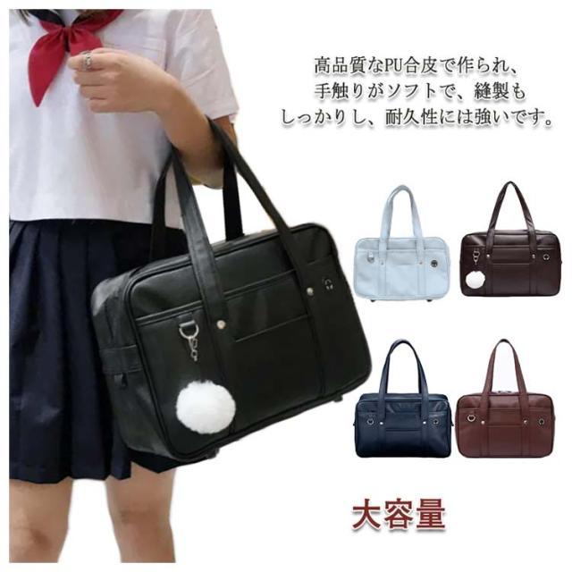 スクールバッグ 合皮 ショルダー サブバッグ 女子高生 サブバッグ 中学生 高校生 女子 男子 ブラウン ブラック 黒 学生鞄 通学 学校 大容量 A4