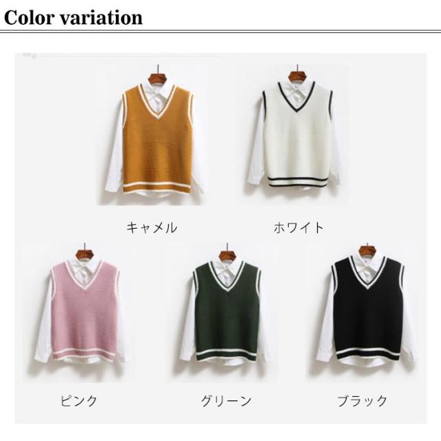 ニットベスト Vネック サマーベスト レディース サマーニット ノースリーブ ゆったり きれいめ カジュアル 学生 スクール キャメル ピンク ブラック ホワイト グリーン