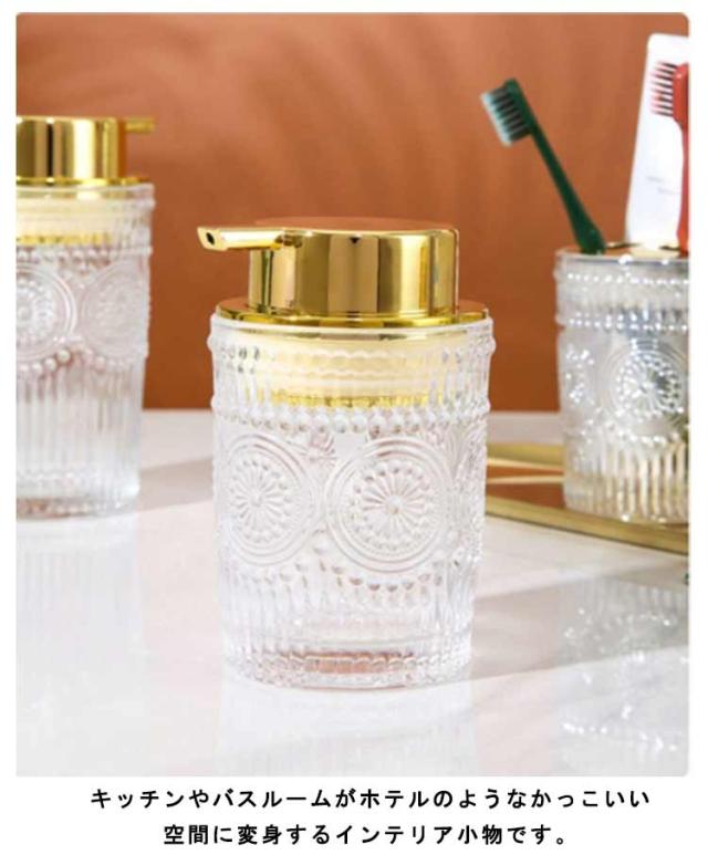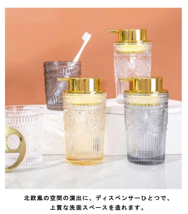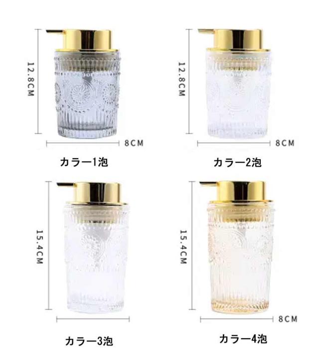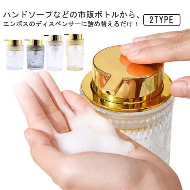 リキッドタイプ&泡立てタイプ シャンプーボトル 泡 詰め替え用 ガラス ソープボトル ソープディスペンサー 詰め替えボトル 詰め替え容器 ボトル ハンドソープ 乳液 かわいい クリア 爽やか スキンケア エンボス レトロ