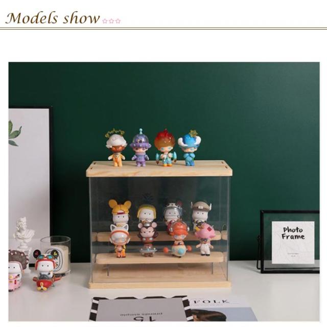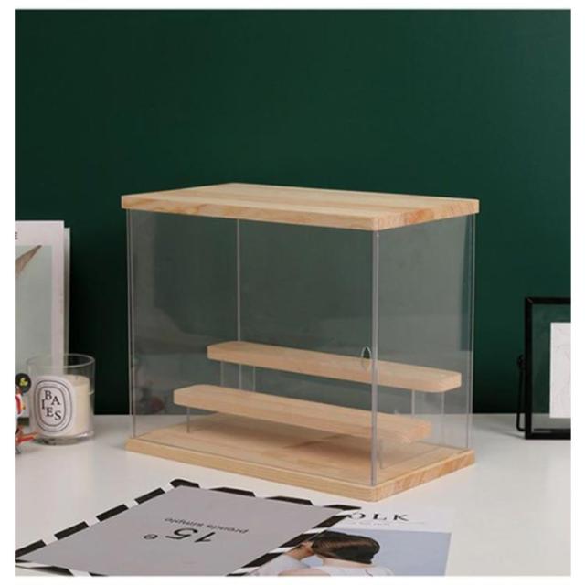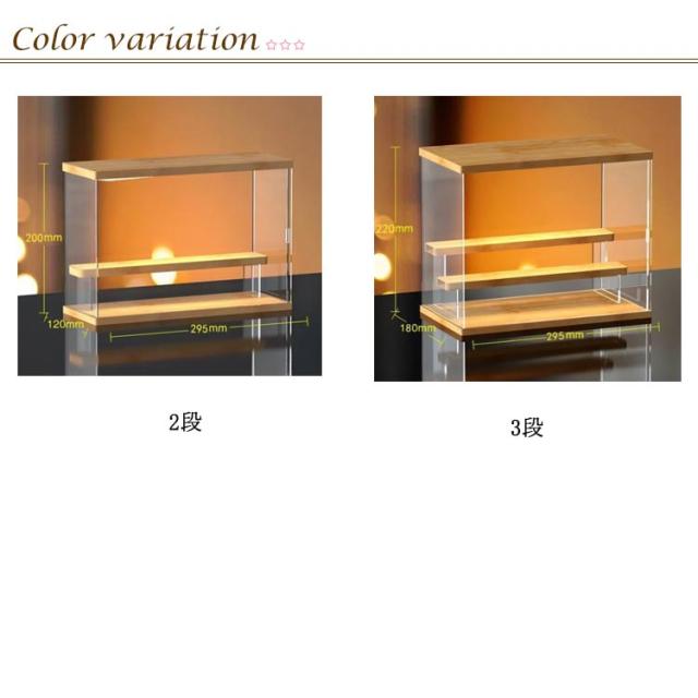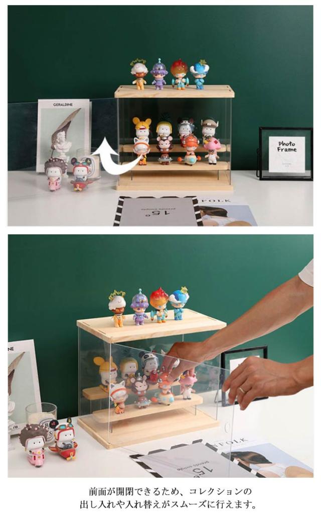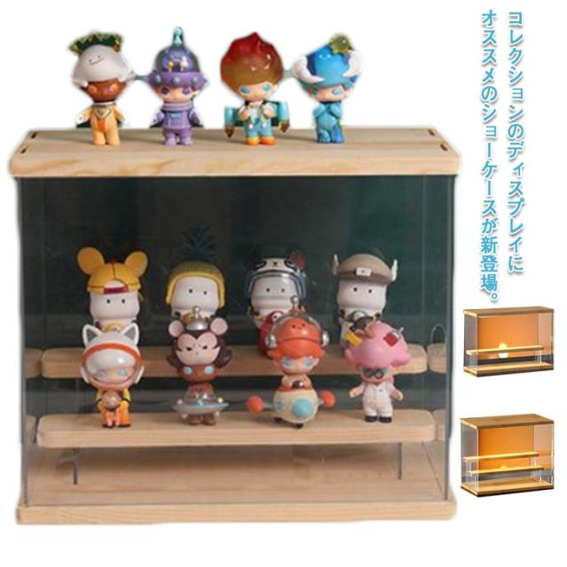 フィギュアケース アクリル製 木目調 コレクションケース 組立式 卓上 ディスプレイケース アクリルケース 2段/3段ステージ 展示 前開き 扉付き ミニフィギュア対応 収納ボックス 透明 防塵 人形 プラモデル 模型