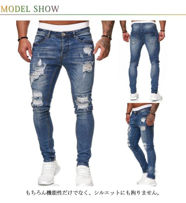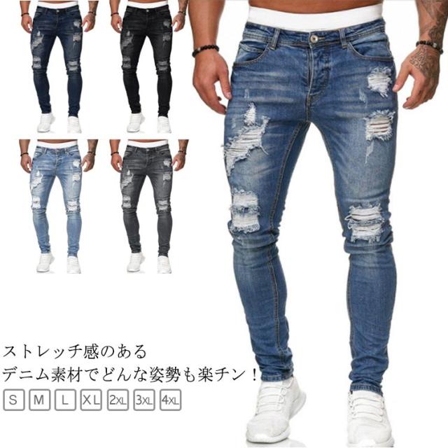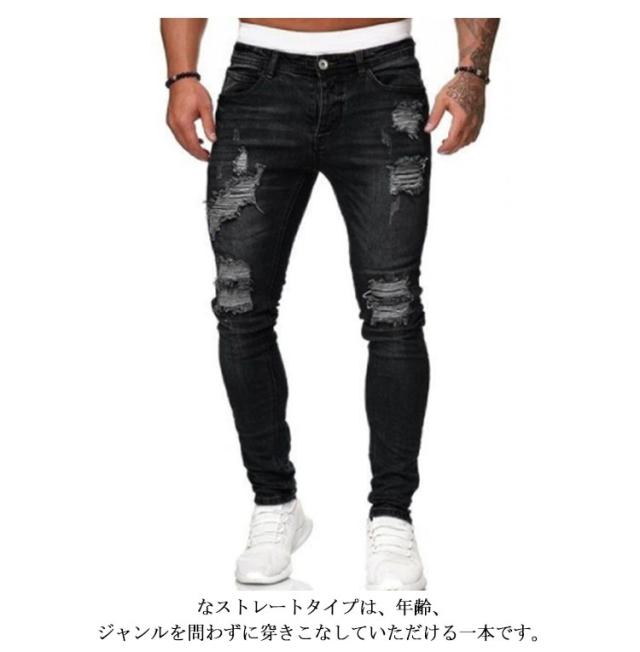 全5色 メンズ スキニー デニム パンツ ダメージ ジーンズ ジーパン ストレッチデニム 大きいサイズ カジュアル 人気 かっこいい 細身 クラッシュデニム 男性 クリスマス ギフト プレゼント
