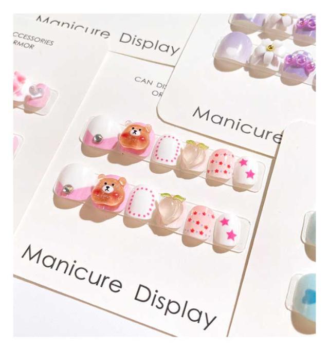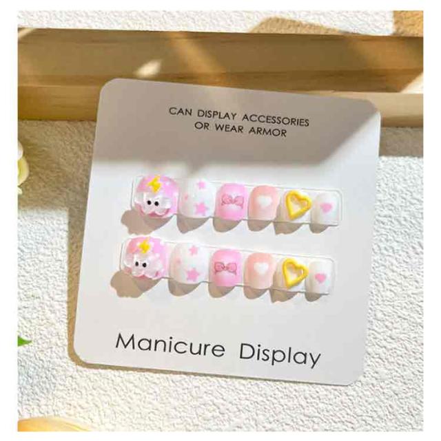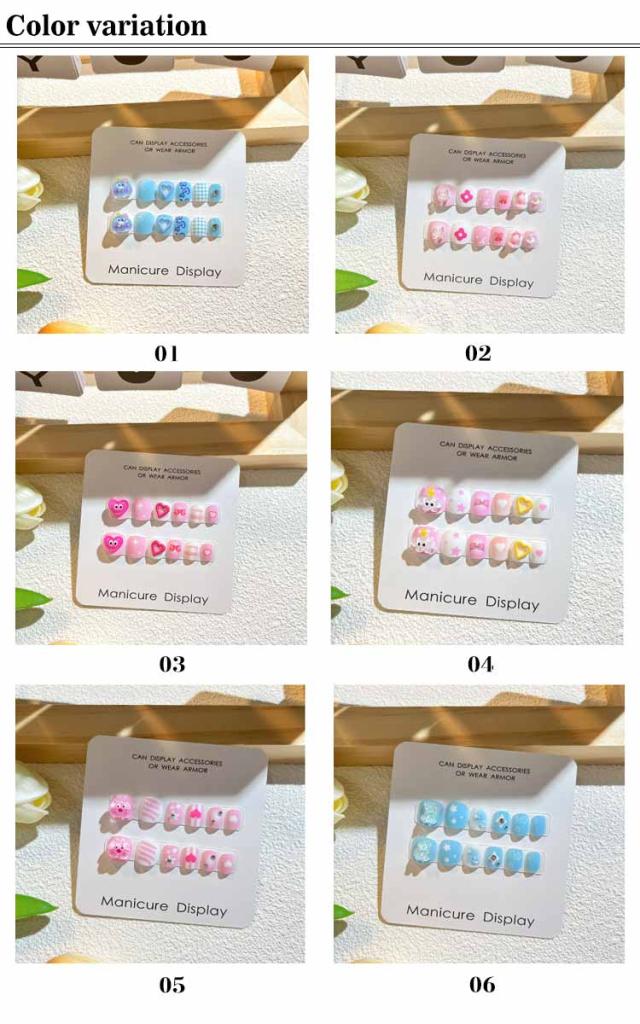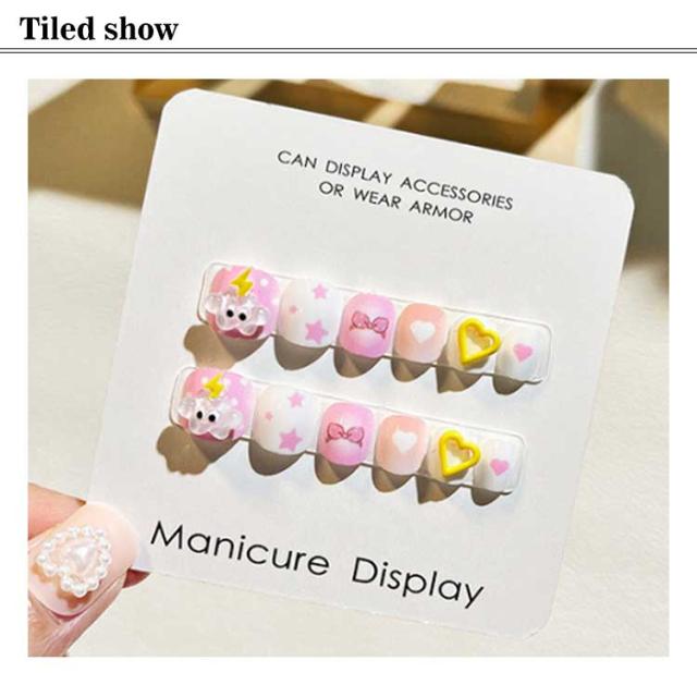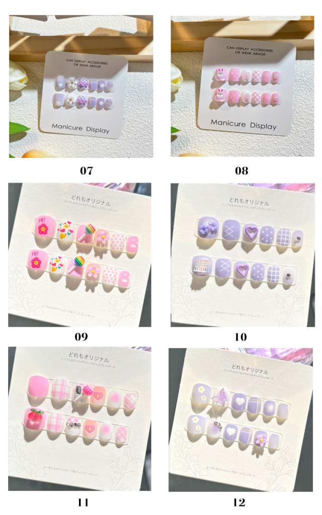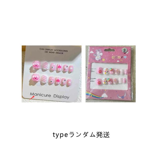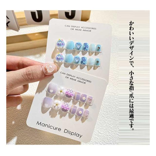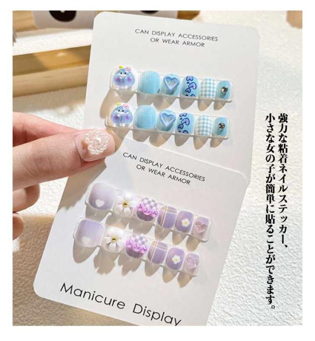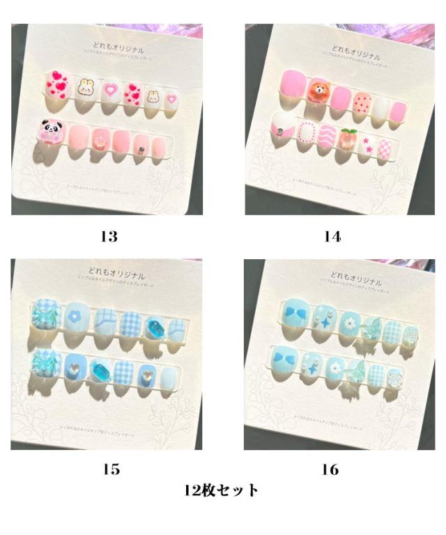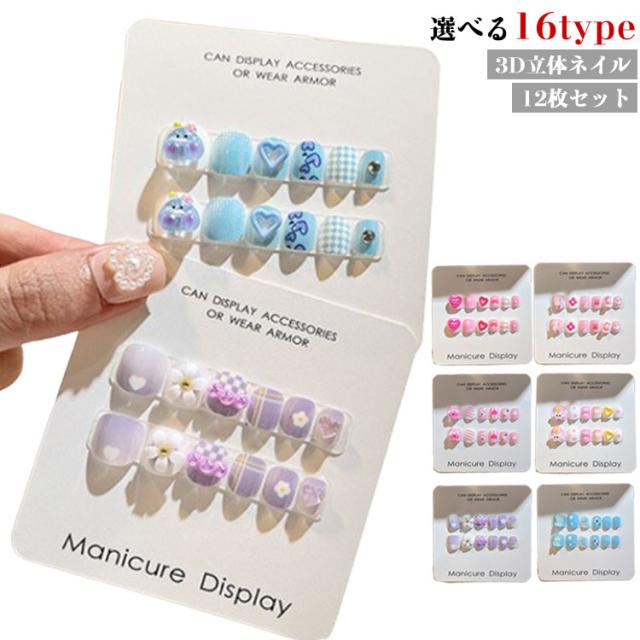 12枚セット 子供 ネイルチップ 立体 3D 貼るだけ 韓国風 ネイル用両面テープ付き ネイル つけ爪 キッズ マニキュア かわいい セルフネイル 人気 こども用 おしゃれ簡単 選べる16種類
