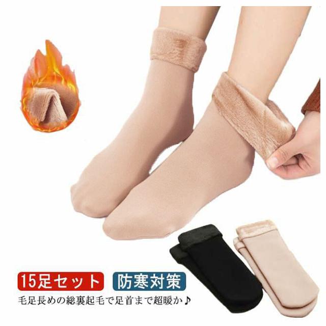 15足セット!冷えとり靴下 裹起毛 ソックス レディース あったか ソックス 裏ボア 温かい ルームソックス 靴下 くつ下 女性 レディース メンズ ストレッチ 防寒対策 保温 暖かい 冬 足冷え 極厚 男女兼用 黒 ブラック ベージュ 抗菌防臭 送料無料