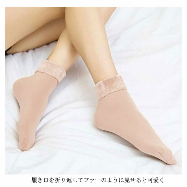 | 毛足長めの総裏起毛で足首まで超暖か♪ 保温性が高く伸縮性に優れ、快適な履き心地 履き口を折り返してファーのように見せると可愛く 冷える足元にマスト! ルームソックスとしてもおすすめ | |