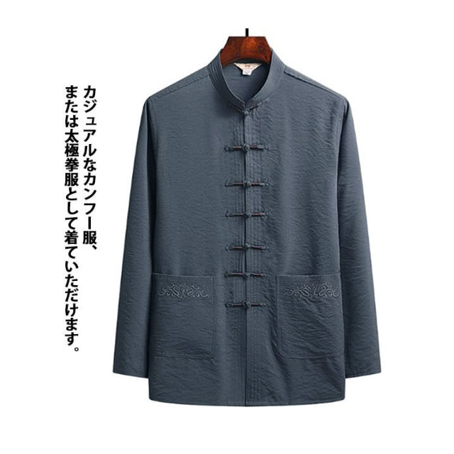 チャイナ服 メンズ チャイナシャツ カジュアルシャツ カンフー服 太極拳服 男性用 中華風 大きいサイズ 立ち襟 スタンドカラー カンフーシャツ チャイナボタン トップス 涼しい おしゃれ 男性 唐装 漢服 太極拳服 普段着 中華風 中華服 演出服 送料無料