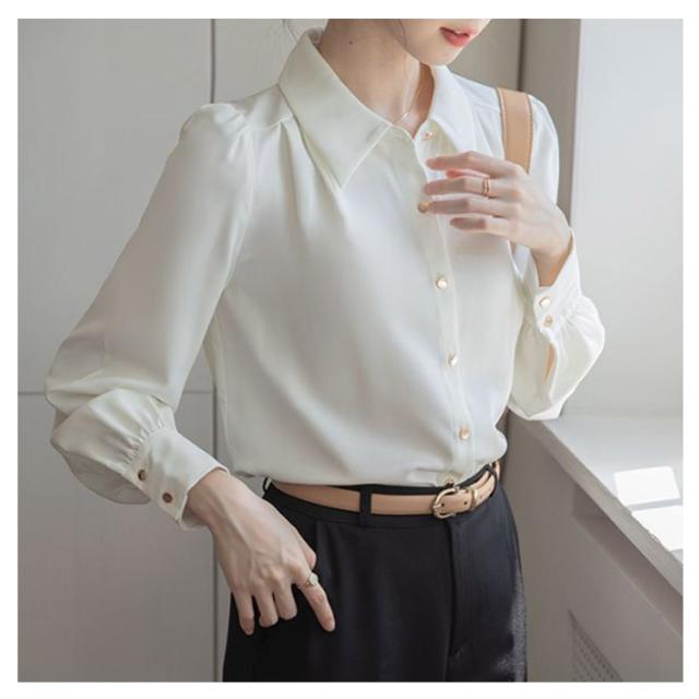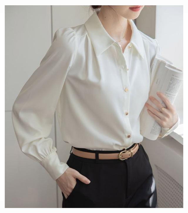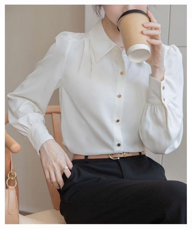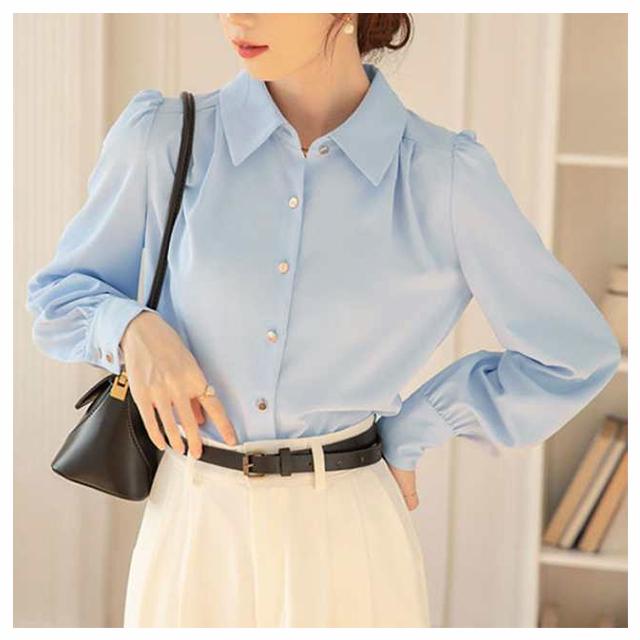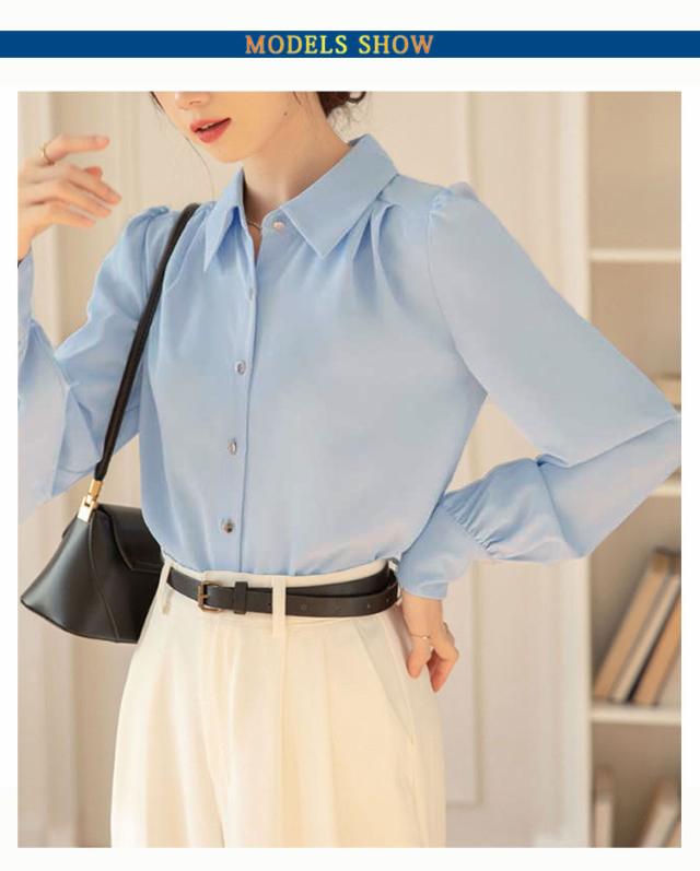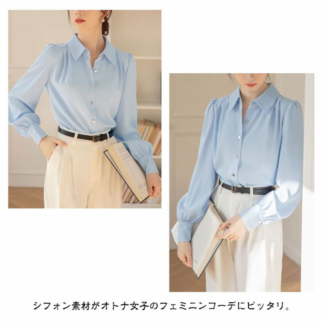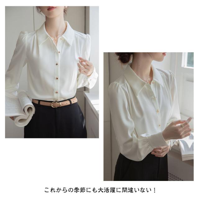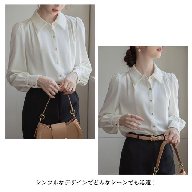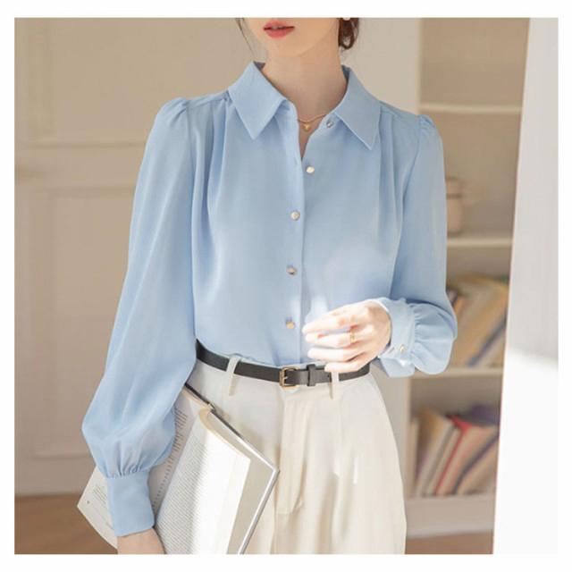 ブラウス おしゃれ レディース 冬 オフィス シフォン 可愛い 長袖 OL シワになりにくい 春秋 ワイシャツ 前開き スキッパー 春 ゆったり トップス きれいめ 大きいサイズ 通学 通勤 事務 フォーマル ビジネス 襟付き シャツ 大人 女性 無地