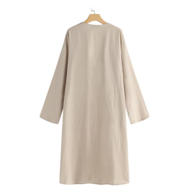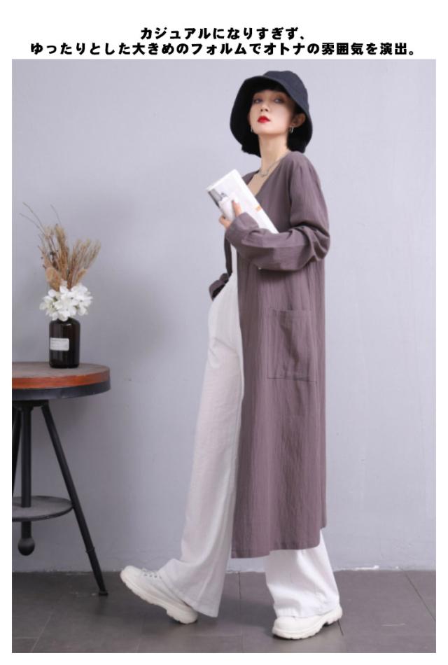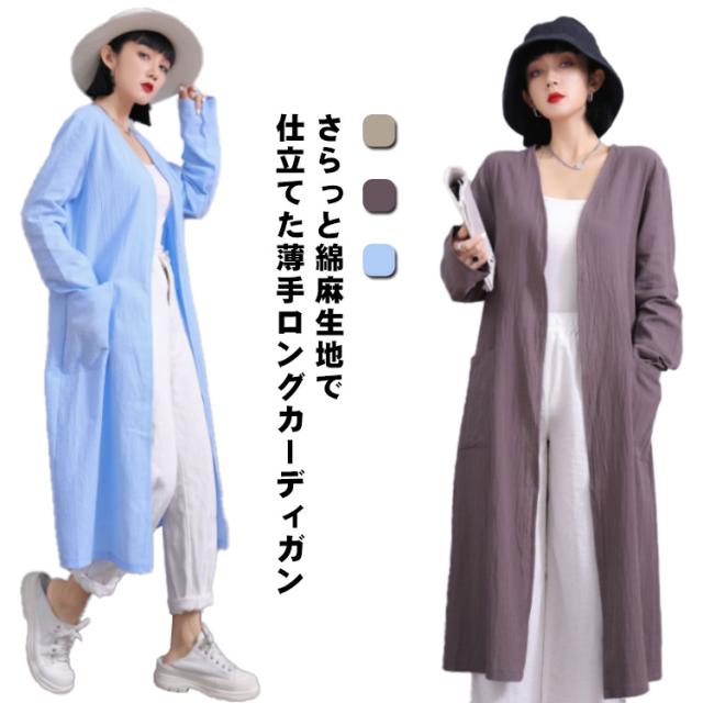 S-5XLサイズ!サマージャケット 送料無料 ロングジャケット トレンチコート 羽織り 上着 コート ジャケット レディース ロング丈 春 アウター ライトアウター 綿麻 無地 体型カバー ゆったり ノーカラー サマーカーディガン ポケット付き 無地 大きサイズ カジュアル 通勤 OL