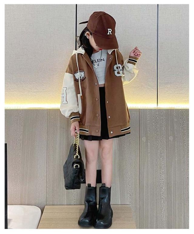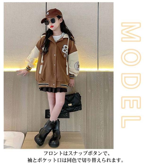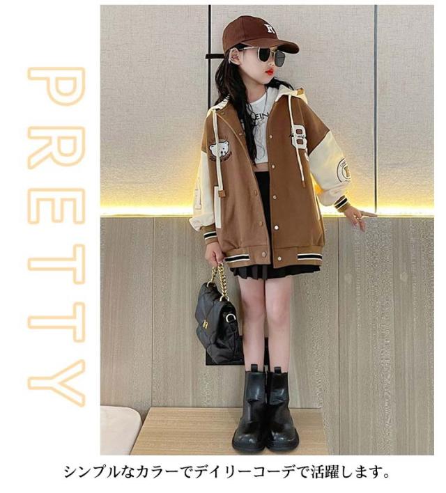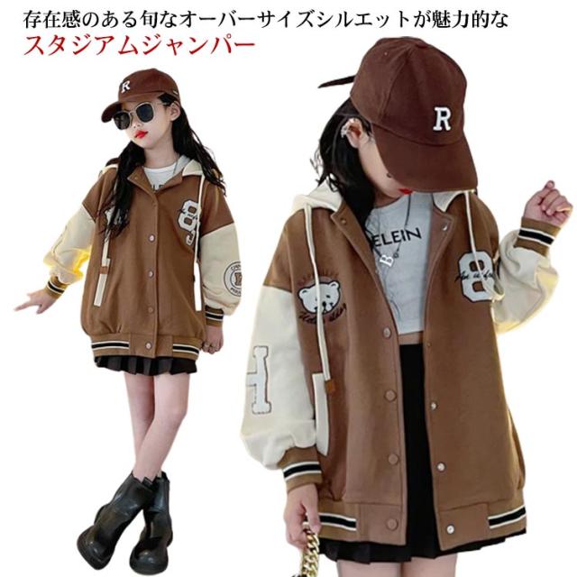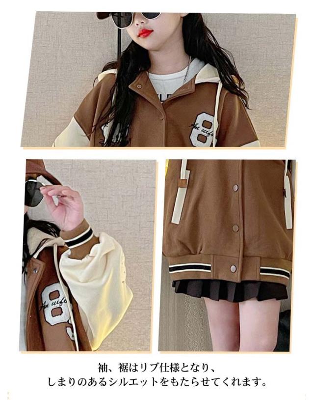 スタジャン 子供服 キッズ アウター ブルゾン ベースボール ジャケット フード付き 長袖 切替 フライトジャケット スカジャン スタジアムジャンパー スポーツ 上着 可愛い 女の子 男の子 韓国ファッション 子ども服