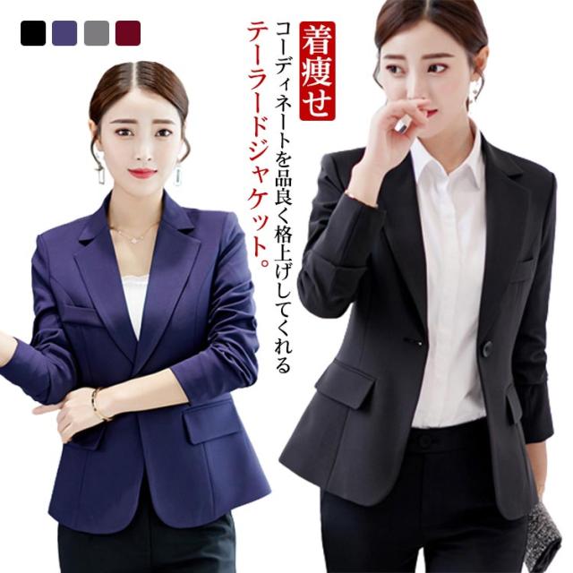 送料無料 テーラードジャケット アウター スーツ ジャケット 春秋 冬 レディース スーツコート カラフル スリム 着痩せ オシャレ シワになりにくい 形態安定 カジュアル フォーマル 裏地付き