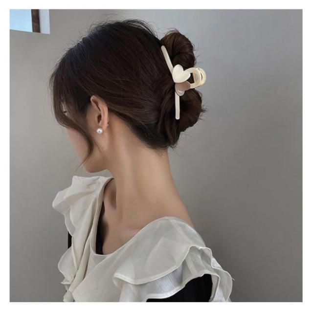 | 髪に馴染むマットな質感のハートデザインバンスクリップ。 大きめサイズでしっかりと髪束をホールドしやすく、 ラフなまとめ髪もさっと挟むだけで後ろ姿にこなれたアクセントをプラス◎ 忙しい朝でも気軽にさっとお使いいただけます。 | |