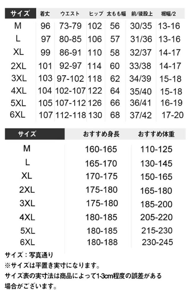| サイズ | M L XL 2XL 3XL 4XL 5XL 6XL |