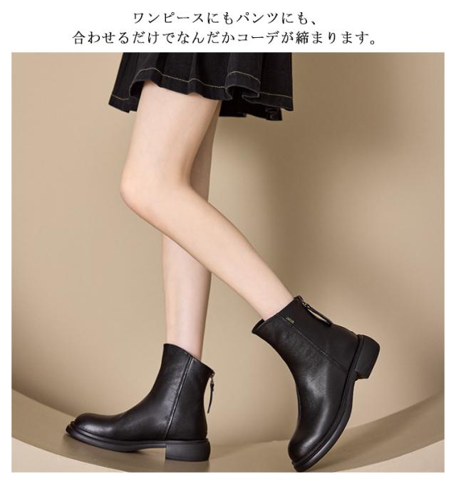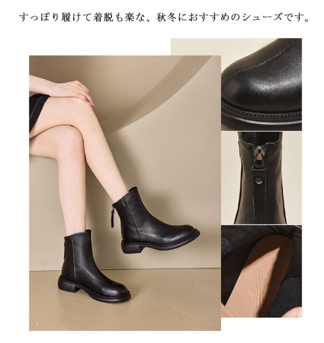 レディース ブーツ ローヒール ショートブーツ 歩きやすい 軽量 ファスナー 痛くない シューズ 美脚 柔らかい 春 秋 冬 大きいサイズ 走れる 通勤 結婚式 パーティー