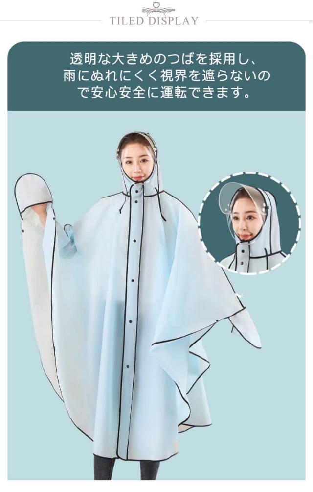 | ・自転車専用設計で突然の雨でも安心! ・透明な大きめのつばを採用し、雨にぬれにくく視界を遮らないので安心安全に運転できます。 ・手の甲をしっかり覆ってくれる手甲カバー ・表面は超はっ水加工で水はじき抜群。 ・長めの丈なので濡れにくい。 ・自転車通学や通勤にもおすすめ。 | |