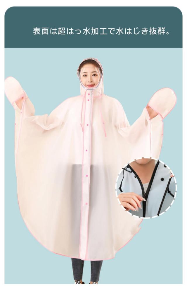 自転車用レインコート ポンチョ レインウェア バイザー付き ツバ 前開き 二重ツバ 手袋付き レインポンチョ ジップアップ メンズ レディース 大人 ロング丈 ロングポンチョ 自電車 全身 覆える 合羽 カッパ 台風 防災 雪 梅雨 通勤 通学