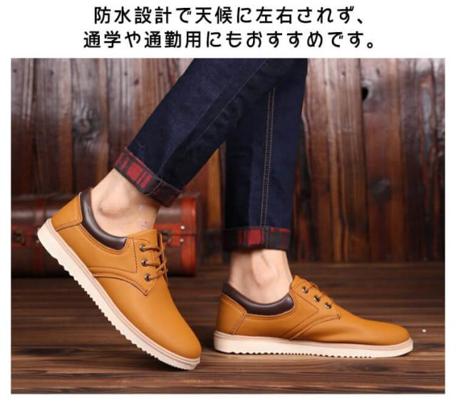 スニーカー メンズ 防水 ローカット レースアップ 防水シューズ PU革 靴 カジュアルシューズ ビジネススニーカー 紐靴 紳士靴 軽量 おしゃれ 疲れない 紐靴