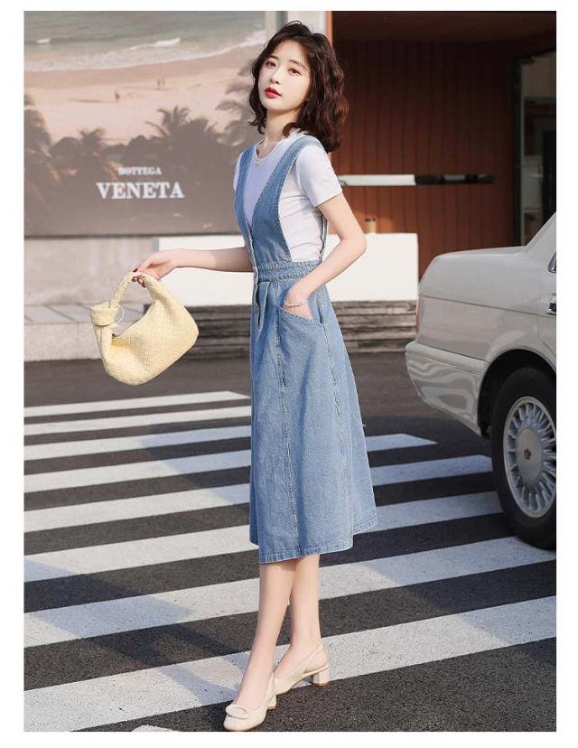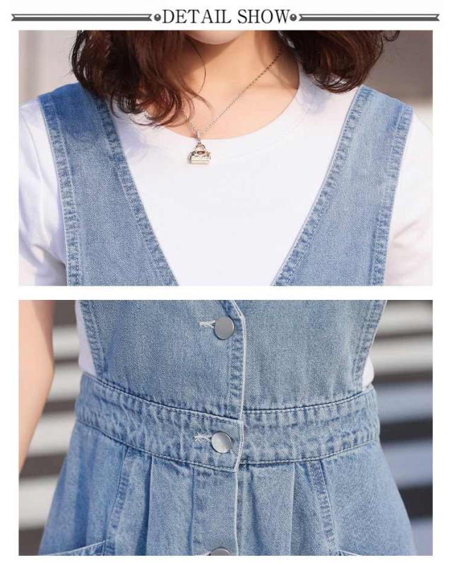 ジャンパースカート デニム フロントボタン レディース オールインワン サロペット ワンピース Vネック Aライン ノースリーブ 袖なし 前開き ボタン ポケット付き 大人 きれいめ 楽ちん ボトムス 春 夏 無地
