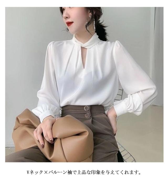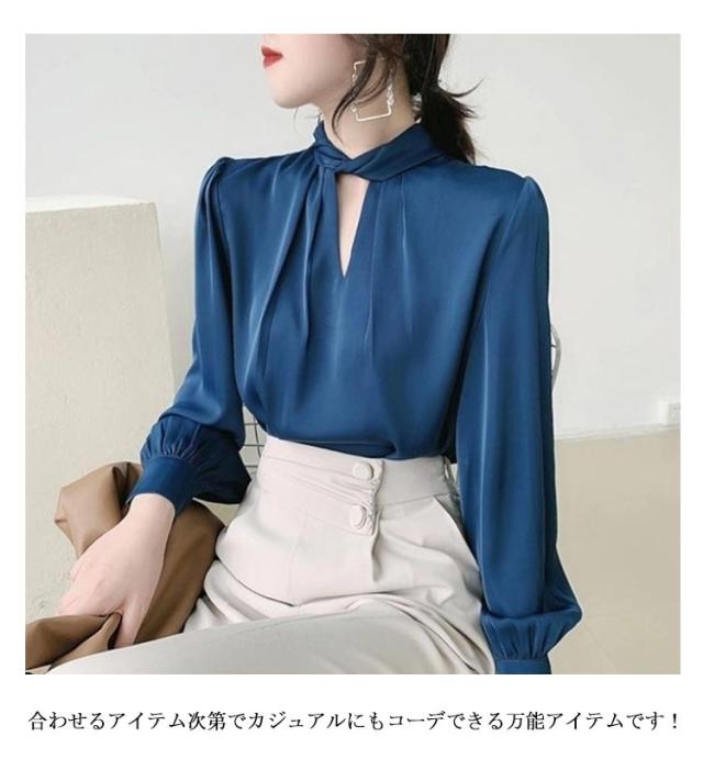 ギャザー入り ブラウス フォーマル 長袖 ボリューム袖 レディース シャツ サテン風 長袖ブラウス フォーマルブラウス オフィスブラウス オフィス おしゃれ 春 春物 春服 上品 S M L XL 2XL