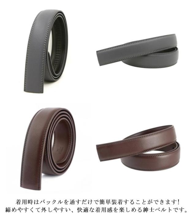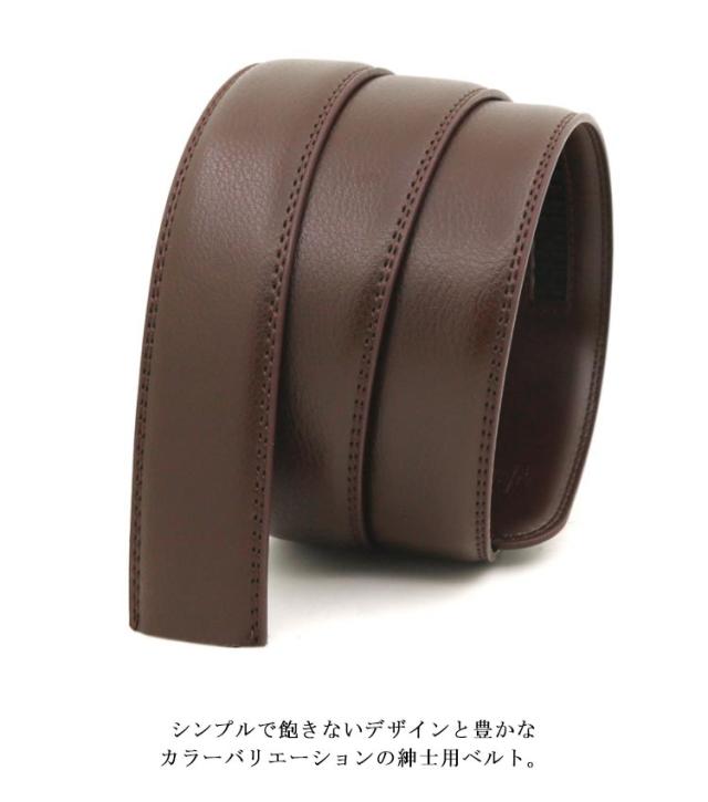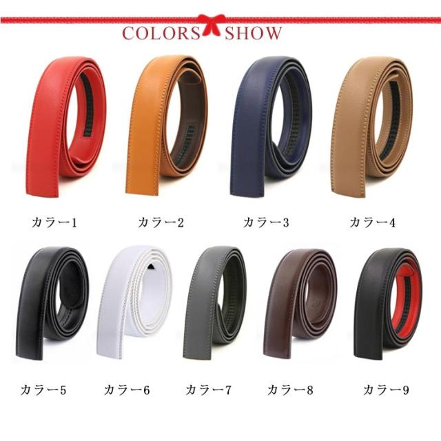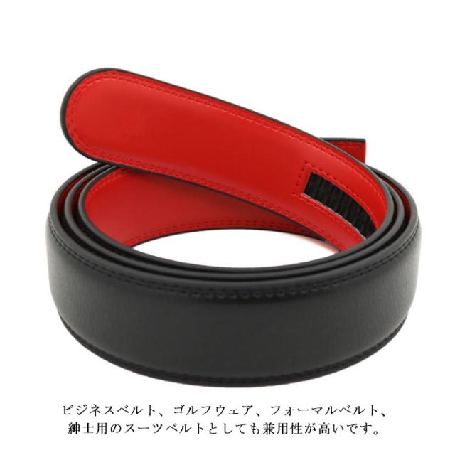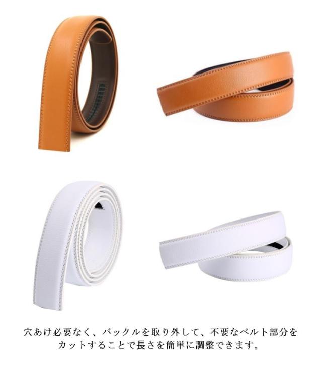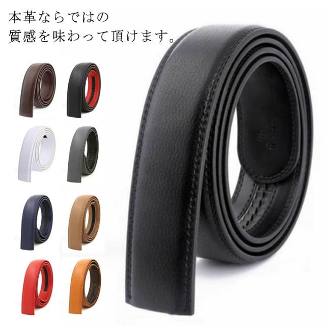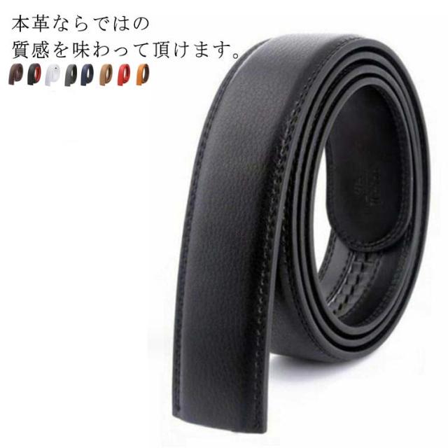 ベルト バックルなし ゴルフ メンズ ベルトのみ 35mm 穴なし 帯のみ 交換用 替えベルト ベルト革のみ 無段階 オートロック ワンタッチ ズボン用 ゴルフ用 大きいサイズ 黒 茶色 オレンジ 130