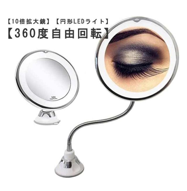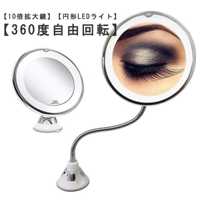 送料無料 10倍拡大鏡 LED化粧鏡 浴室鏡 卓上鏡 女優ミラー 壁掛けメイクミラー 吸盤ロック付きLEDミラー 360度回転ミラー スタンドミラー ミラー 誕生日 プレゼント 女性 メイク 化粧 スキンケア 鏡 10倍拡大鏡 ギフト