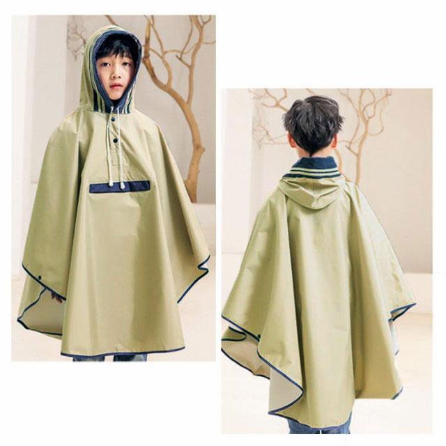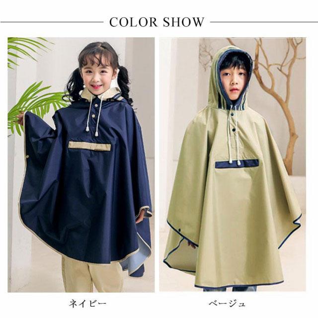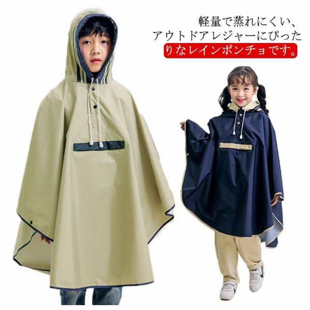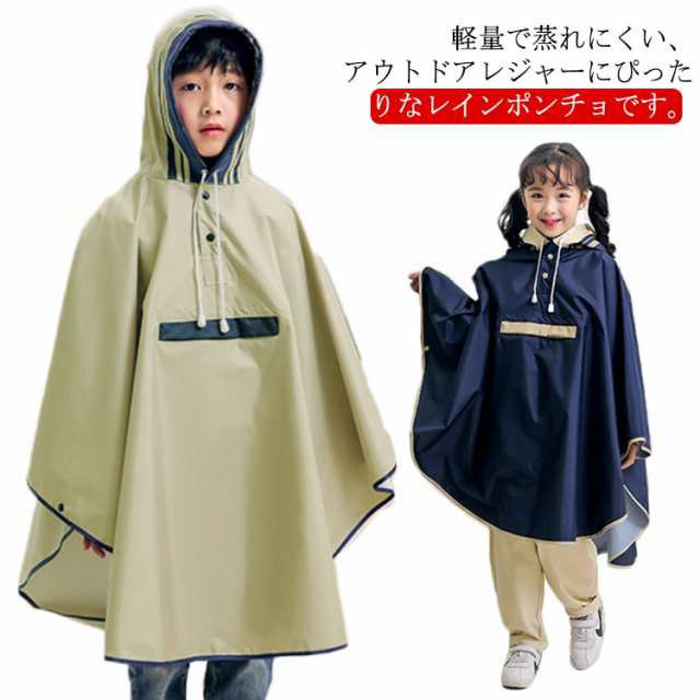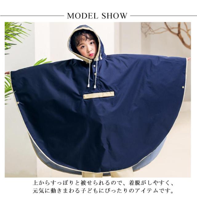 キッズ レインウェア レインコート ポンチョ カバー 雨合羽 ランドセル対応 防水 防風 通学 子供 女の子 男の子 小学生 雨具 収納袋付き 梅雨対策 自転車 リュック対応 ポケット付き レインウェア ネイビー 紺 90 100 110 120 130 140 【送料無料】