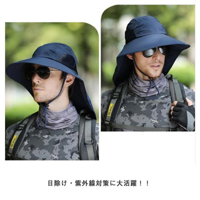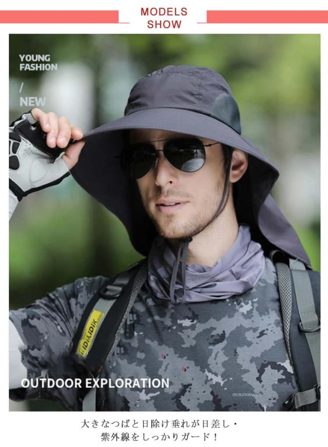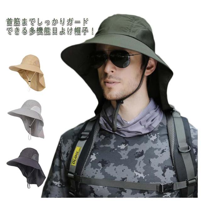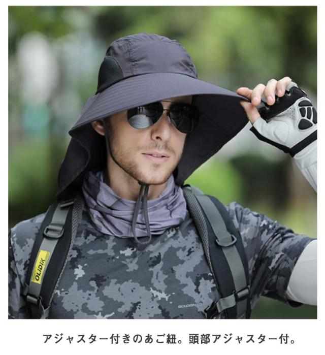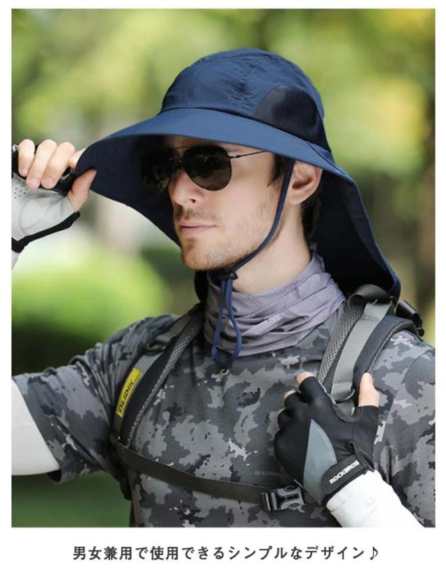 日よけ帽子 サファリ ハット UVカット つば広帽子 メンズ レディース 帽子 ハット 送料無料 日焼け対策 ストラップ付 農作業 農業 ガーデニング おしゃれ 首ガード 登山 釣り スポーツ アウトドア ビーチハット