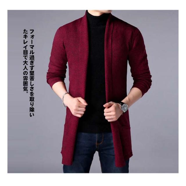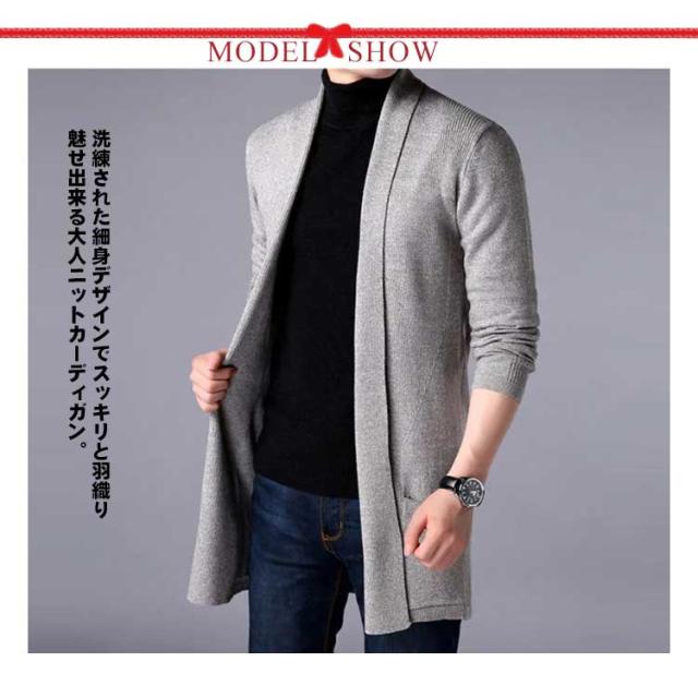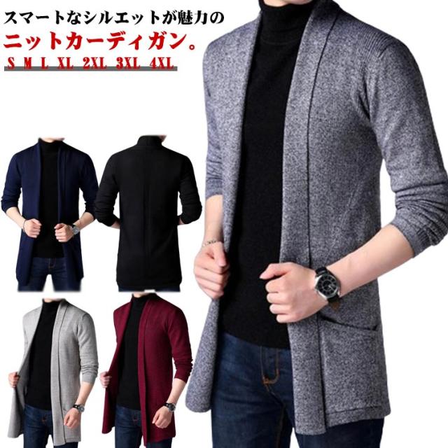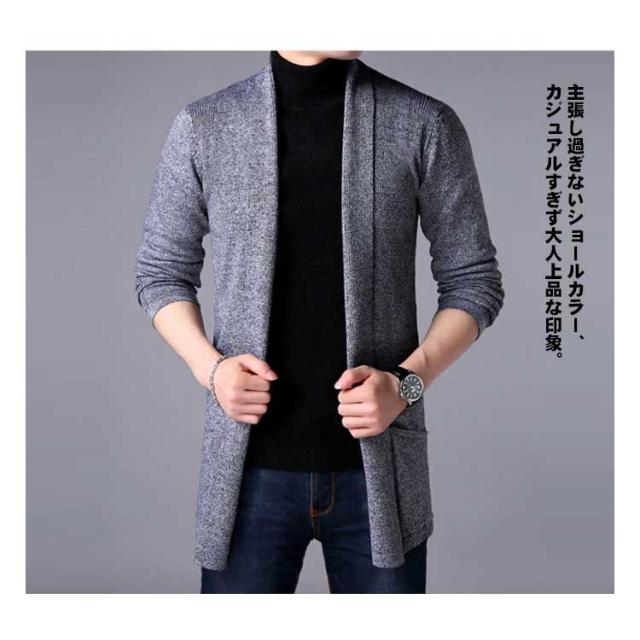 カーディガン メンズ ロング丈 長袖 カーデ ショールカラー 細身 スリム ニットカーディガン お兄系 キレイ目 ロングカーディガン 送料無料 ニット セーター トップス 無地 ジャケット アウター 羽織り 通勤 30代 40代 50代 60代