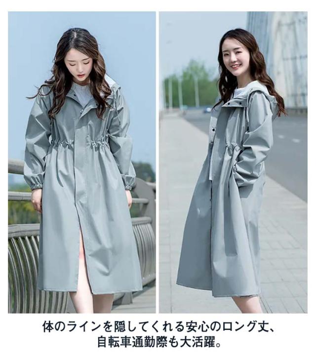 | 機能性もおしゃれ度も充実のレインコート。 羽織るだけで雨の日もオシャレに◎洋服みたいなレインコート。 防水性能に優れるながら、内側の湿気を逃し、蒸れずに快適な着心地を実現。 Aラインだからスタイルが良く見える! 体のラインを隠してくれる安心のロング丈&おしゃれなテールカット。 洋服のように使い勝手が良い3色。 体のラインを隠してくれる安心のロング丈、自転車通勤際も大活躍。 | |