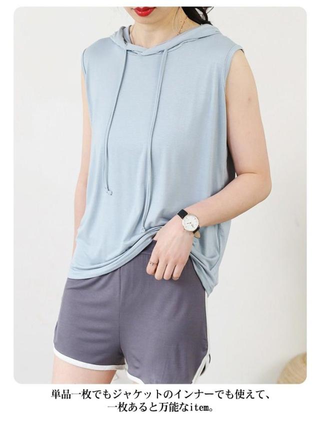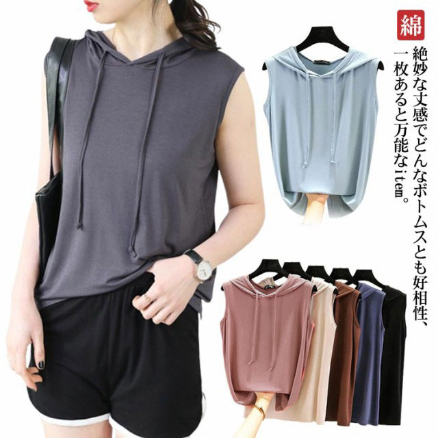 ベストTシャツ フード付き タンクトップ レディース メンズ 無地 夏 袖なし ノースリーブ タンクトップ パーカー トップス スポーツ ベスト トレーニング ゆったり トレーニング 薄手 大きいサイズ レイヤード 袖なしパーカー おしゃれ 送料無料