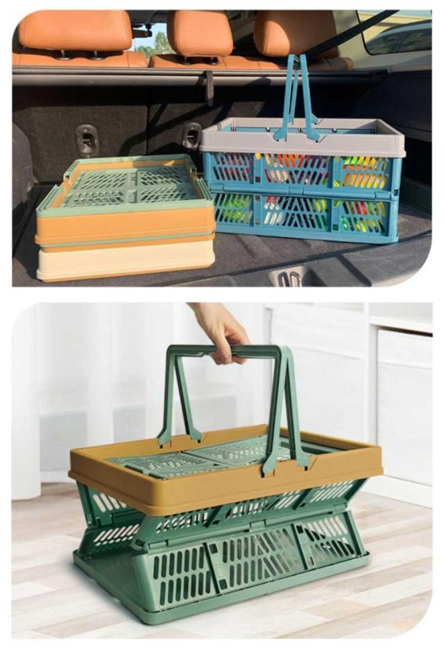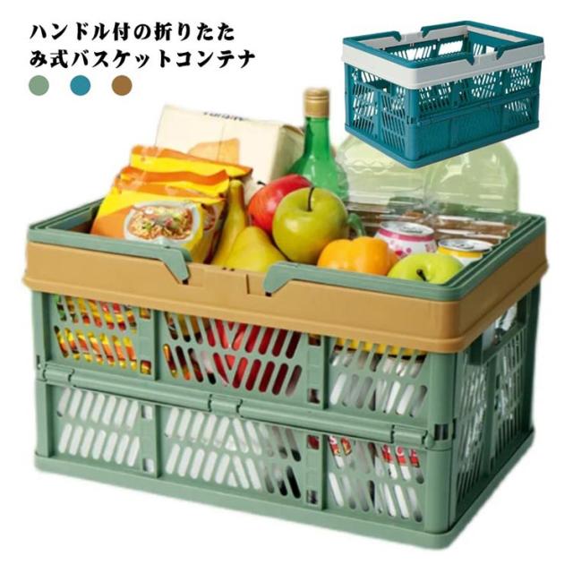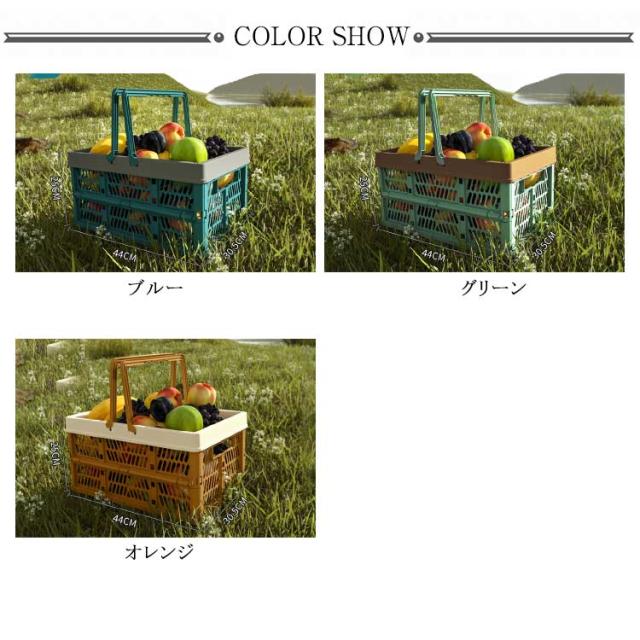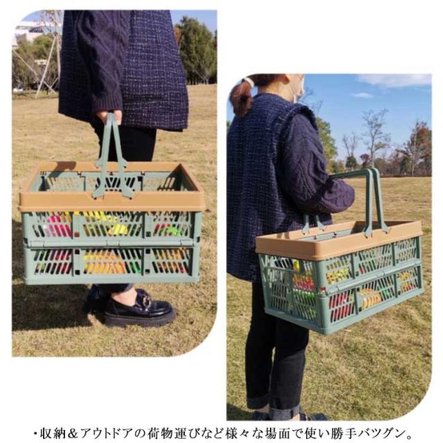 ショッピングバスケット 買い物かご 折りたたみ 大容量 コンテナボックス フォールディング コンパクト レジャー アウトドア キャンプ バーベキュー 収納ケース 工具箱 収納ボックス