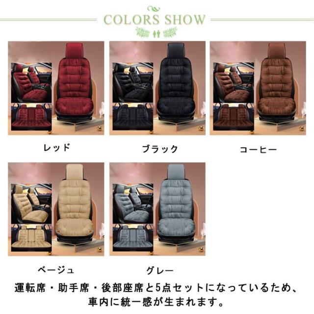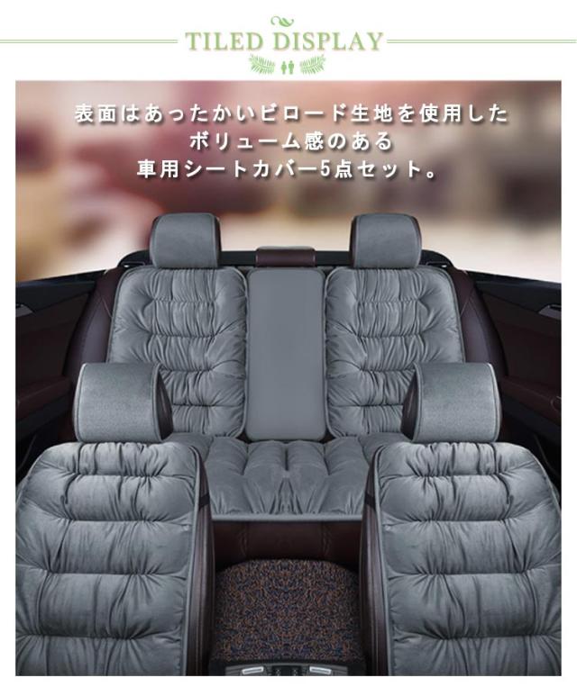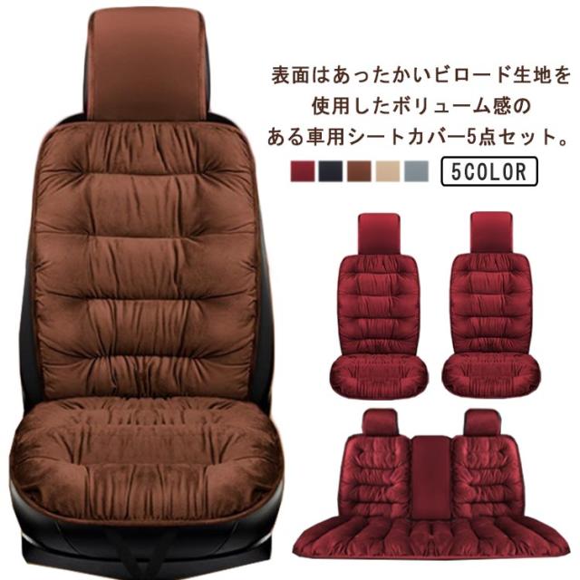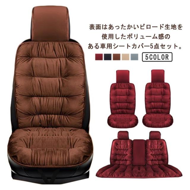 【5点セット】車用 シートカバー 5点セット カーシートカバー 起毛 ふわふわ カーシートクッション カーマット 車座席シート 車座布団 車用品 秋 冬 防寒 厚手 ダウン風 中綿 あたっか 軽自動車 汎用 運転席 助手席 後部座席 車アクセサリー