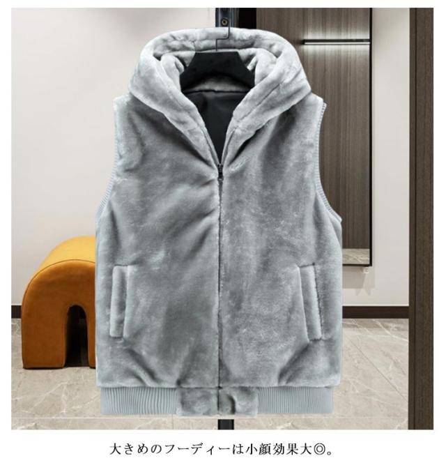 ファー ベスト フード付き フェイクファー ベスト ファー ジレ ファーベスト レディース コーデ 秋冬 ファージレ エコファー フェイク 大きいサイズ 羽織り トップス 大人 おしゃれ