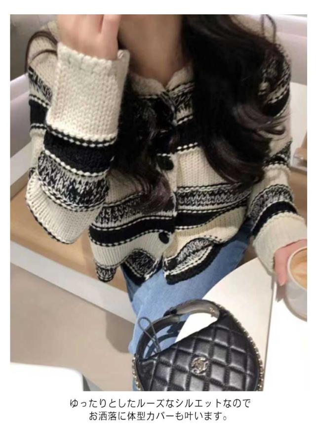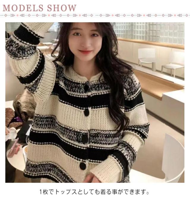 ニット カーディガン レディース セーター トップス 長袖 ボーダー 前開き ゆったり お洒落 可愛い お出かけ カーデ 通勤 通学 お出かけ 韓国ファッション 春 秋 冬