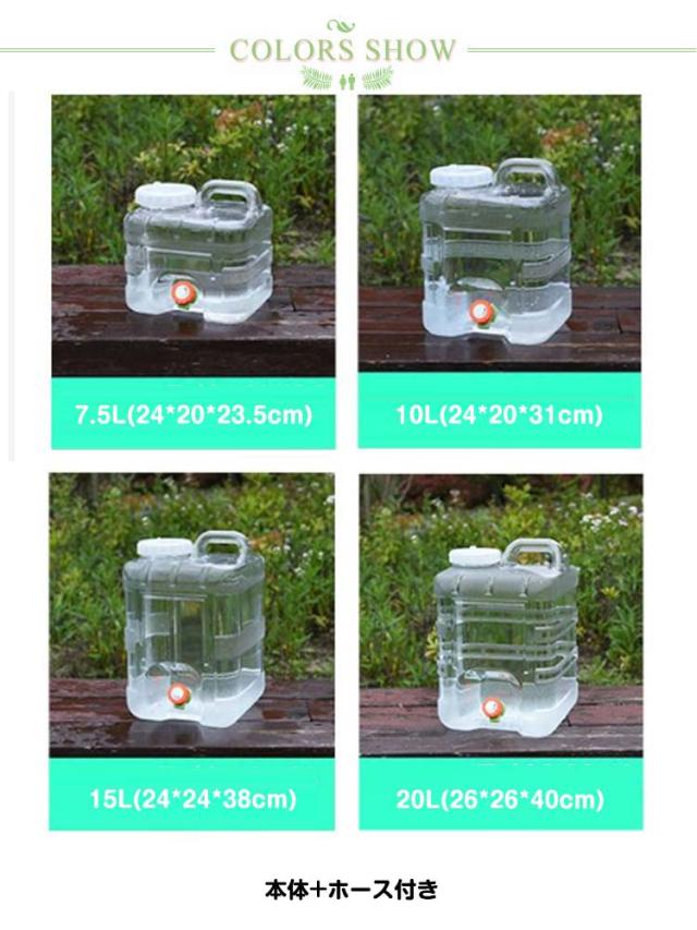 ウォータータンク 7.5L 10L 15L 20L 蛇口付き クリア コック付き 給水タンク 防災グッズ 給水用品 ホース付き 防災用品 アウトドア キャンプ ウォッシャブルタンク 水タンク 水缶 持ち運び