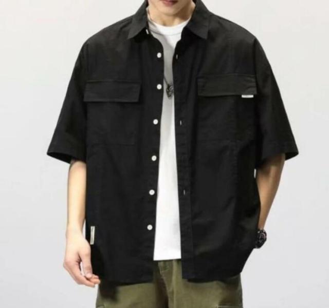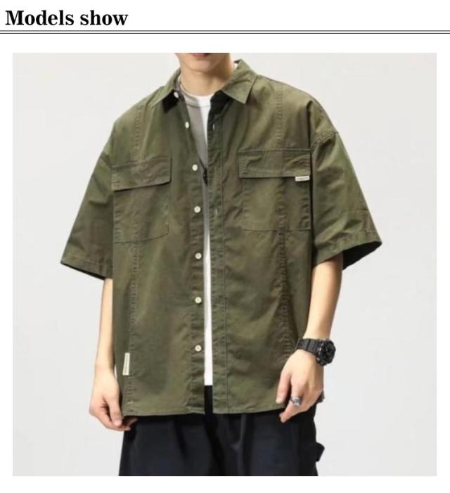 ミリタリー シャツジャケット メンズ ミリタリージャケット 半袖 5分袖 サマージャケット 春 秋 夏 アウター 羽織り ライトアウター オーバーサイズ ミリタリーシャツ カジュアルシャツ 無地 カーキ 黒 フラップポケット