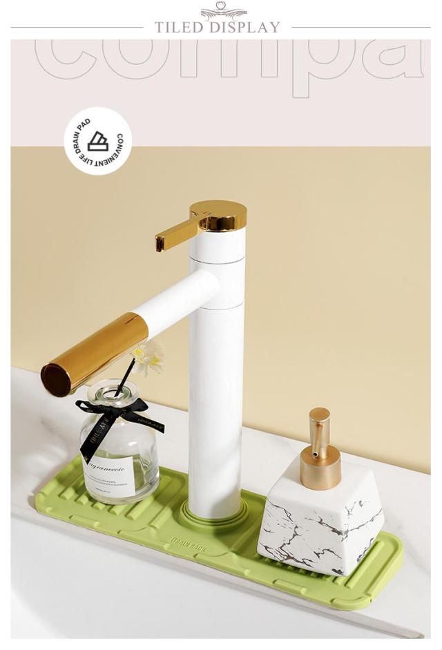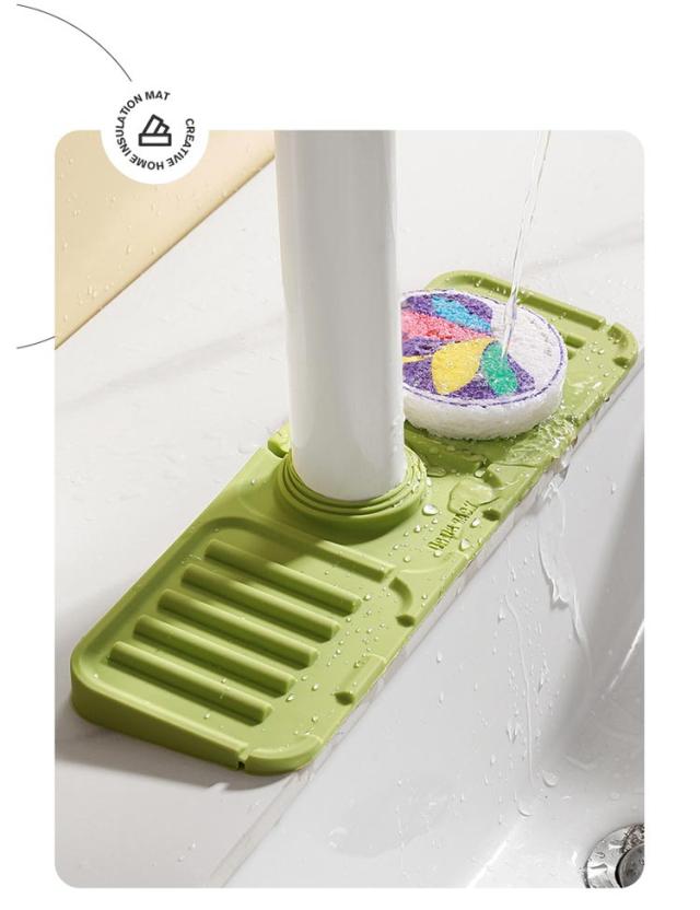 蛇口 水栓水切りマット 32×10cm スポンジ置き キッチン用品 折りたたみ シリコンマット 柔らかい 石鹸置き 洗面所 お手入れ簡単 錆びない 乾燥 便利グッズ 送料無料 水切りトレー 雑貨 台所用品 送料無料