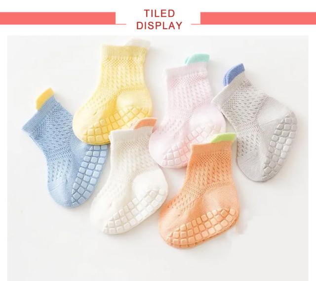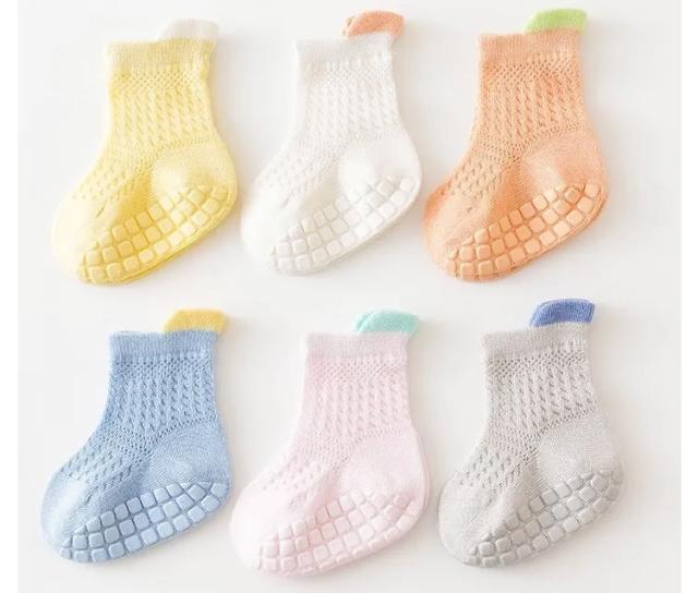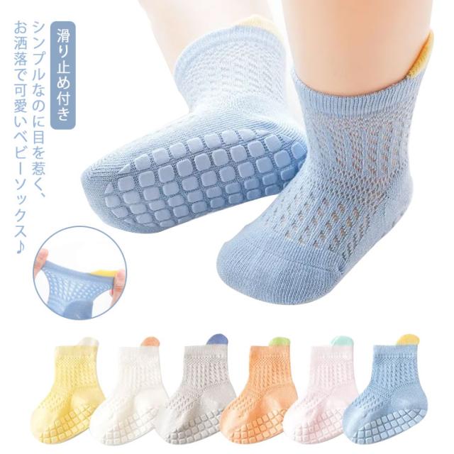 ベビー ソックス 6足セット メッシュ 滑り止め付き 靴下 送料無料 通気性 夏 赤ちゃん 靴下 男の子 女の子 コットン 綿 冷房対策 お出かけ 出産祝い ギフト プレゼント