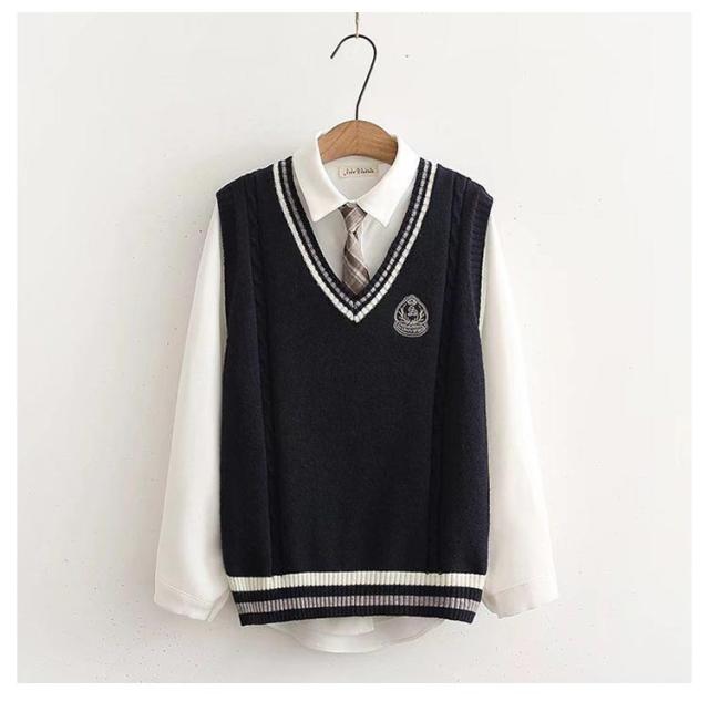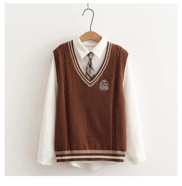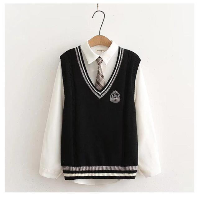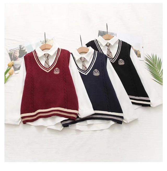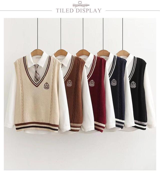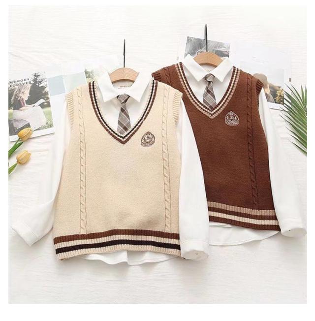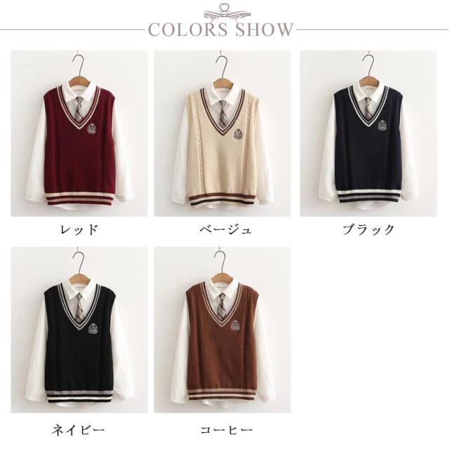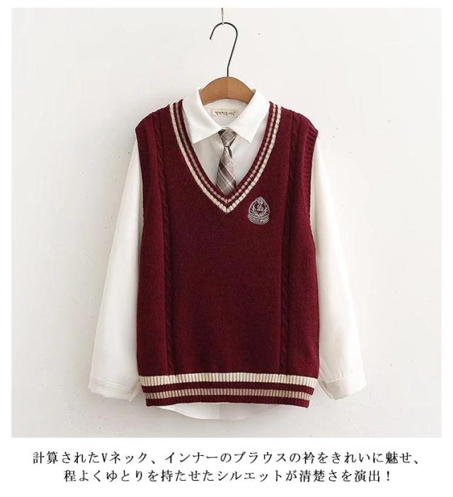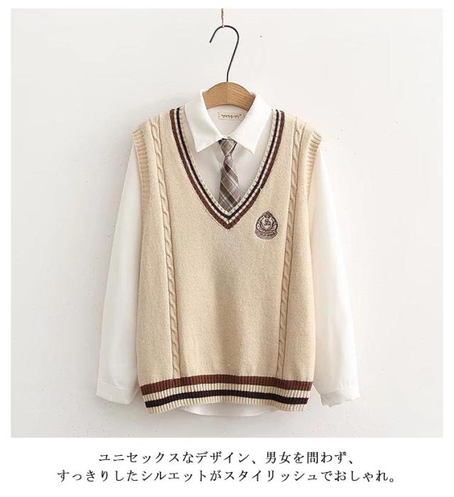 ニットベスト ショート丈 レディース スクールベスト Vネック ノースリーブニット 重ね着 可愛い シンプル ニット ケーブル編み ニットセーター ライン入り 学生服 JK制服