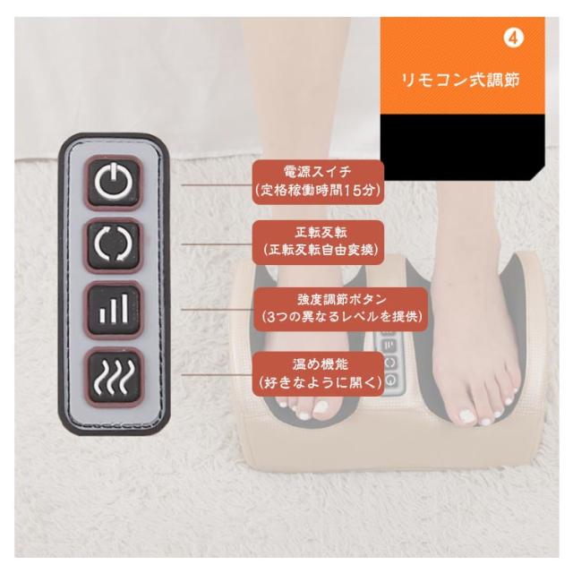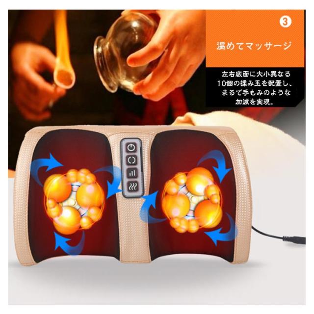 | 4ボタン式 / 6ボタン式 赤外線加熱機能、じんわり暖かくて、足がぽかぽか。 赤外線加熱機能付き、痛みと筋肉の緊張を和らげ、マッサージを容易にします。 強度は3つの異なるレベルを提供できます。 左右底面に大小異なる10個の揉み玉を配置し、まるで手もみのような加減を実現。 操作も簡単で、コンパクトなサイズ感で場所を選ばない人気のフットマッサージャー。 | |